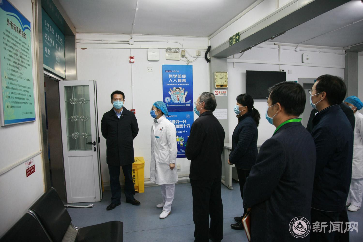 在校醫院,繆勁翔書記仔細了解醫院的科室和人員配備情況以及針對疫情采取的預備措施,詢問了校內人員出現發熱癥狀時的處理流程。