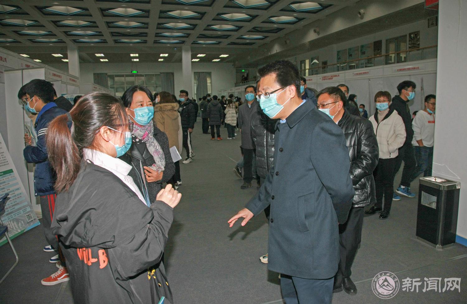 11月25日下午,黨委書記繆勁翔到體育館一層“校園雙選會”現場,調研指導畢業生就業工作。黨委副書記田紅芳陪同參加了調研。