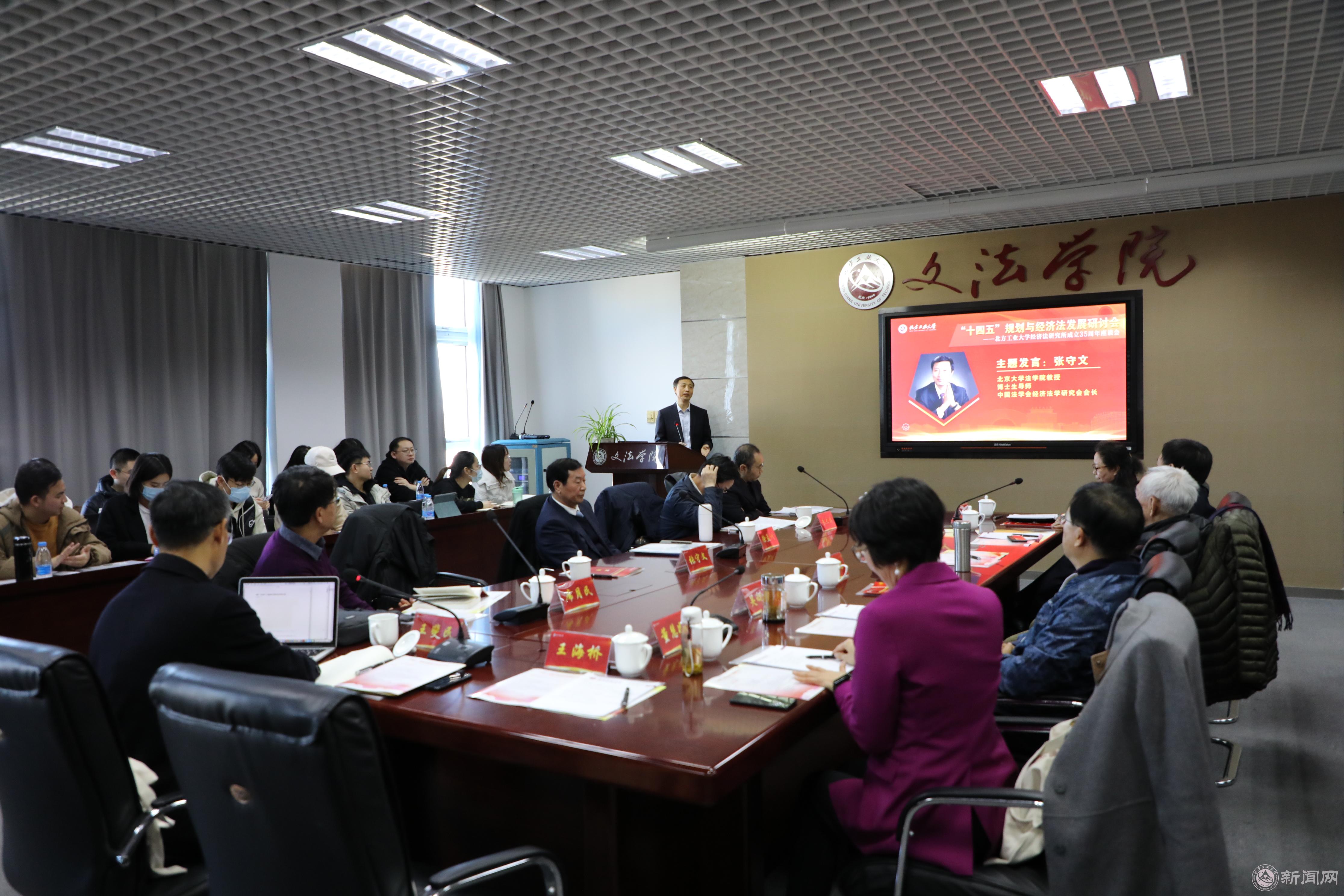 12月4日,“十四五”規(guī)劃與經(jīng)濟法發(fā)展研討會暨北方工業(yè)大學經(jīng)濟法研究所成立35周年座談會在瀚學樓710召開。副校長王建穩(wěn),文法學院院長、教授劉澤軍,經(jīng)濟法研究所原所長、教授張士元,北京大學法學院教授、中國法學會經(jīng)濟法學研究會會長張守文,中國人民大學法學院教授、北方工業(yè)大學客座教授徐孟洲,中國人民大學法學院教授、北京市經(jīng)濟法學會會長朱大旗,中國社會科學院法學所教授、中國社科院法學所經(jīng)濟法室主任席月民,首都經(jīng)貿大學法學院院長、教授張世君,經(jīng)濟法研究所所長、教授董慧凝,法律系系主任、教授王海橋及部分法律系教師、研究生40多人參加了本次研討會。