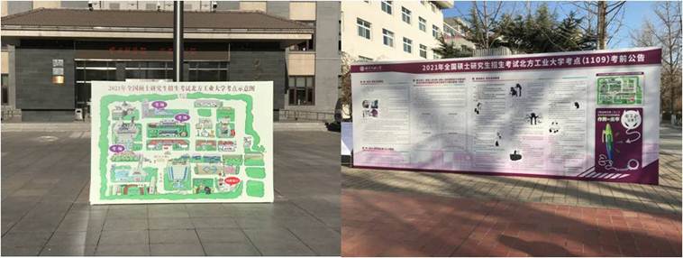 為營造良好考試氛圍,學(xué)校對考點進(jìn)行了專門布置。在考區(qū)入口處懸掛橫幅、設(shè)立背景板,考場內(nèi)張貼考場規(guī)則、考試注意事項,加大考點功能分布、誠信應(yīng)考宣傳力度??键c內(nèi)粘貼“研考”行進(jìn)路線地標(biāo)、考區(qū)內(nèi)張貼考場路線指示箭頭,確保考生順利達(dá)到考場。