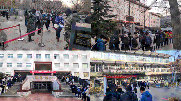 考試當(dāng)天,考生經(jīng)核驗核酸檢測等證明合格后進(jìn)入考點,在考區(qū)門口排隊,再次接受身份查驗、體溫檢測,平穩(wěn)有序入場,考場秩序井然。學(xué)校還對考生進(jìn)的就餐及午間休息地點等進(jìn)行了細(xì)致安排,為考生解除后顧之憂,保證考試順利進(jìn)行。