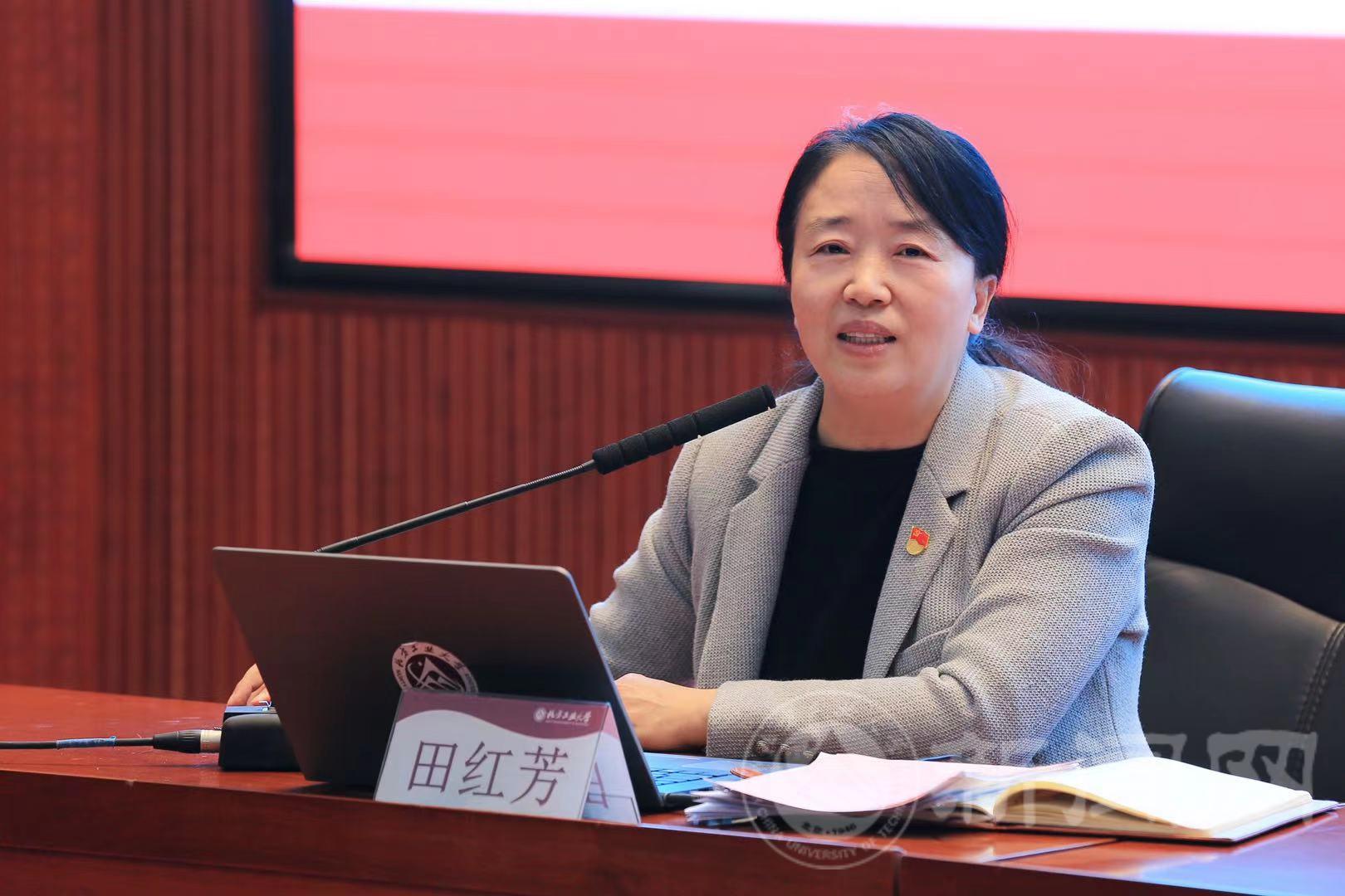 田紅芳作會(huì)議總結(jié)并以“學(xué)黨史、守初心、擔(dān)使命,全力做好新發(fā)展階段學(xué)生思想政治工作”為題做專題報(bào)告。她充分肯定了各學(xué)院學(xué)生工作的有益探索和取得的成績。她指出,要深刻學(xué)習(xí)領(lǐng)會(huì)習(xí)近平總書記在黨史學(xué)習(xí)教育動(dòng)員大會(huì)上的重要講話精神,自覺做到學(xué)史明理、學(xué)史增信、學(xué)史崇德、學(xué)史力行,以昂揚(yáng)姿態(tài)推動(dòng)學(xué)校事業(yè)發(fā)展,全面提升學(xué)校學(xué)生思想政治教育水平,以優(yōu)異成績迎接建黨一百周年。