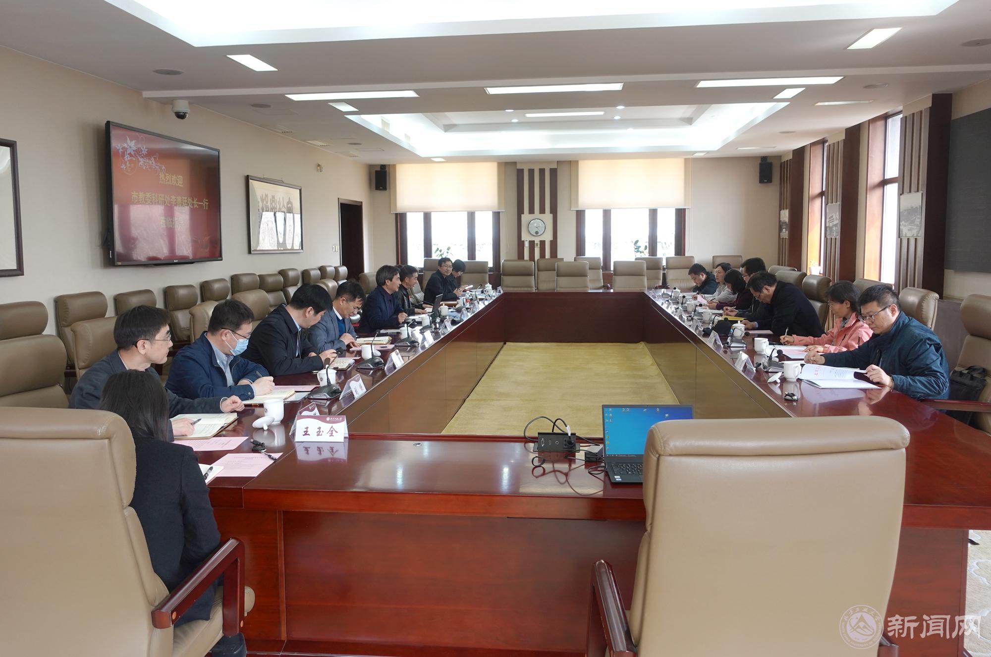 市教委科研處副處長姜世軍、張艷,四級調研員侯東云、張豫、翟昊,一級主任科員劉安邦,學校發展規劃處、研究生院負責人參加了調研座談。