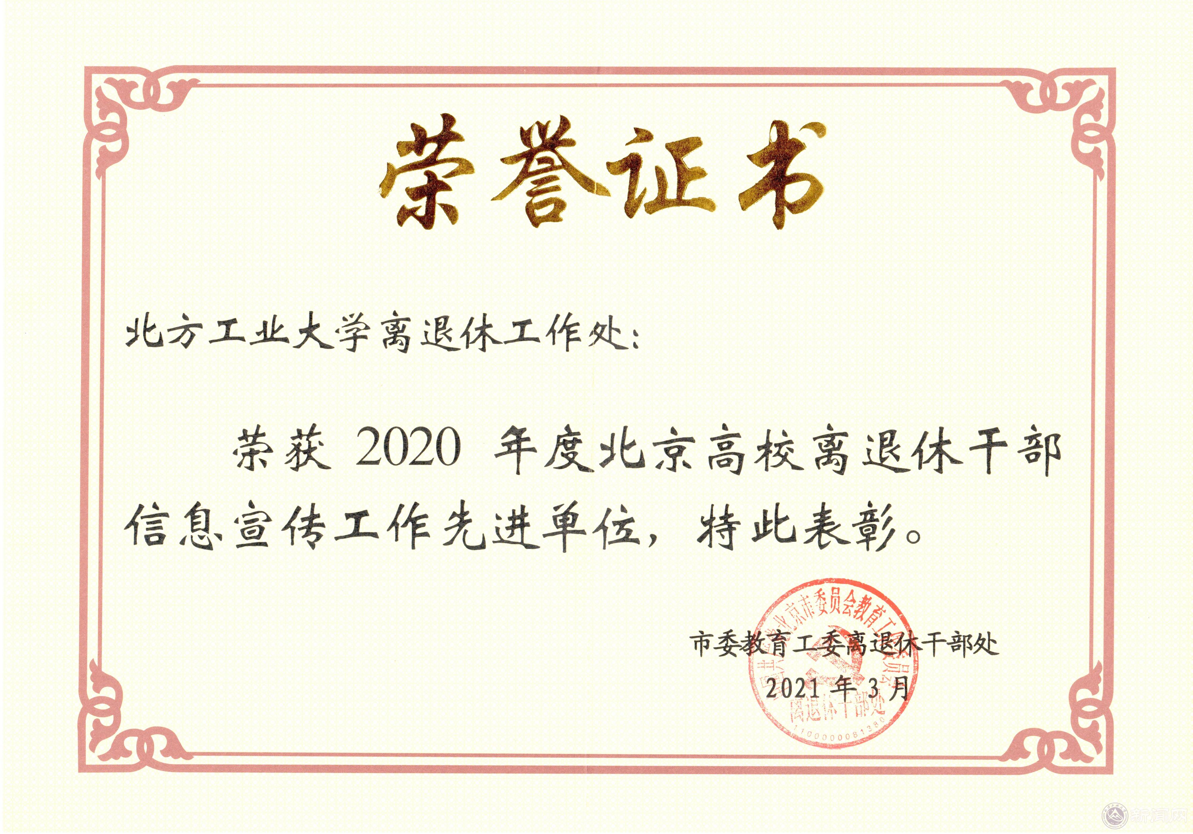 離退休黨委一直高度重視信息宣傳工作,堅持把信息宣傳作為掌握實際情況、實現科學決策、提高工作水平、樹立良好形象、展示工作風采、釋放老同志強大正能量的重要手段。多次獲得北京市教育工委頒發的“北京高校離退休干部信息工作先進單位”稱號。