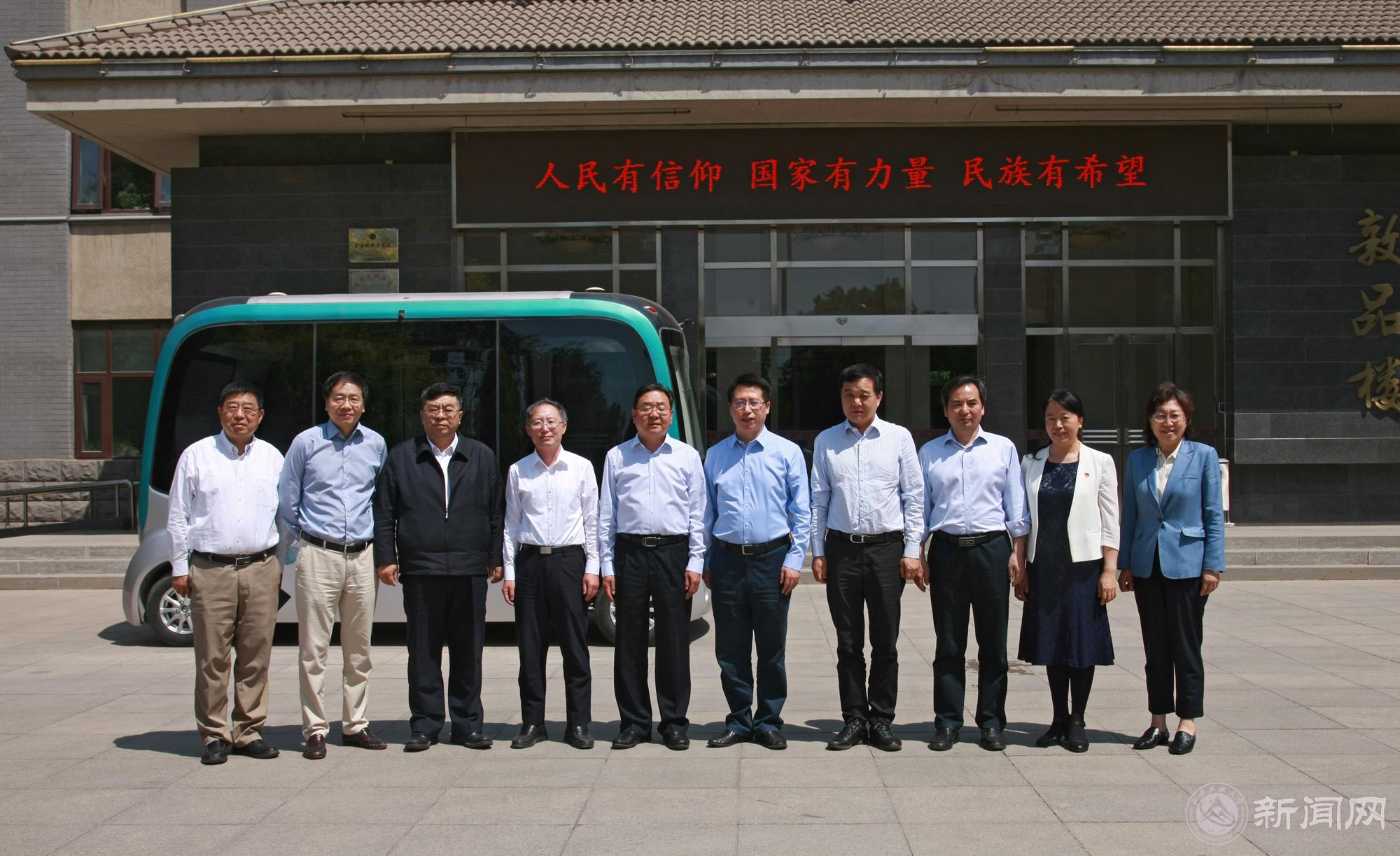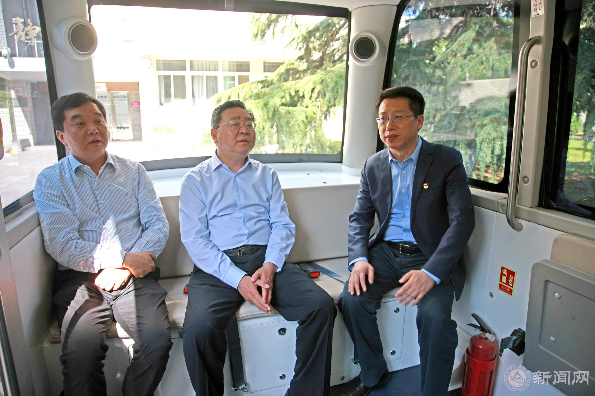 隨后,常衛一行實地體驗學校在5G智能網聯車研究應用方面的最新成果,乘坐由北方工業大學高新技術創新研究院自主研發的5G智能網聯車參觀校園。車上,他不時與-閆江、李萬林進行交流,了解網聯車研發過程、應用場景及技術優勢。