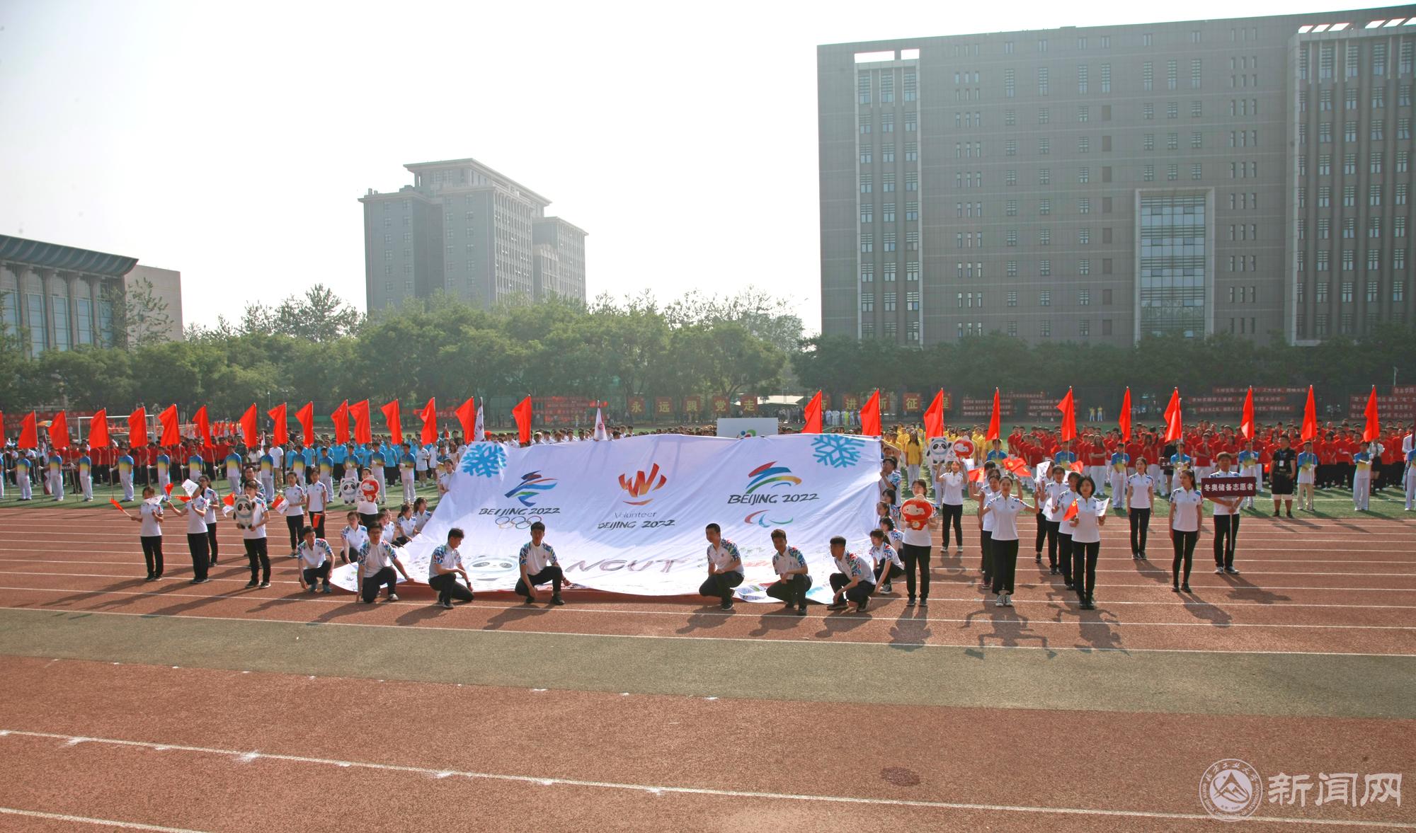 此次運動會專門設立了冬奧會儲備志愿者方陣。為保障2022年冬奧會的成功舉行,我校將選派志愿者參與多項服務,貢獻北方工大力量。冬奧會儲備志愿者方陣還在主席臺前展示了以冬奧運動為題材的巨幅創意海報,表達我校學生對冬奧會的期盼、期待和支持。