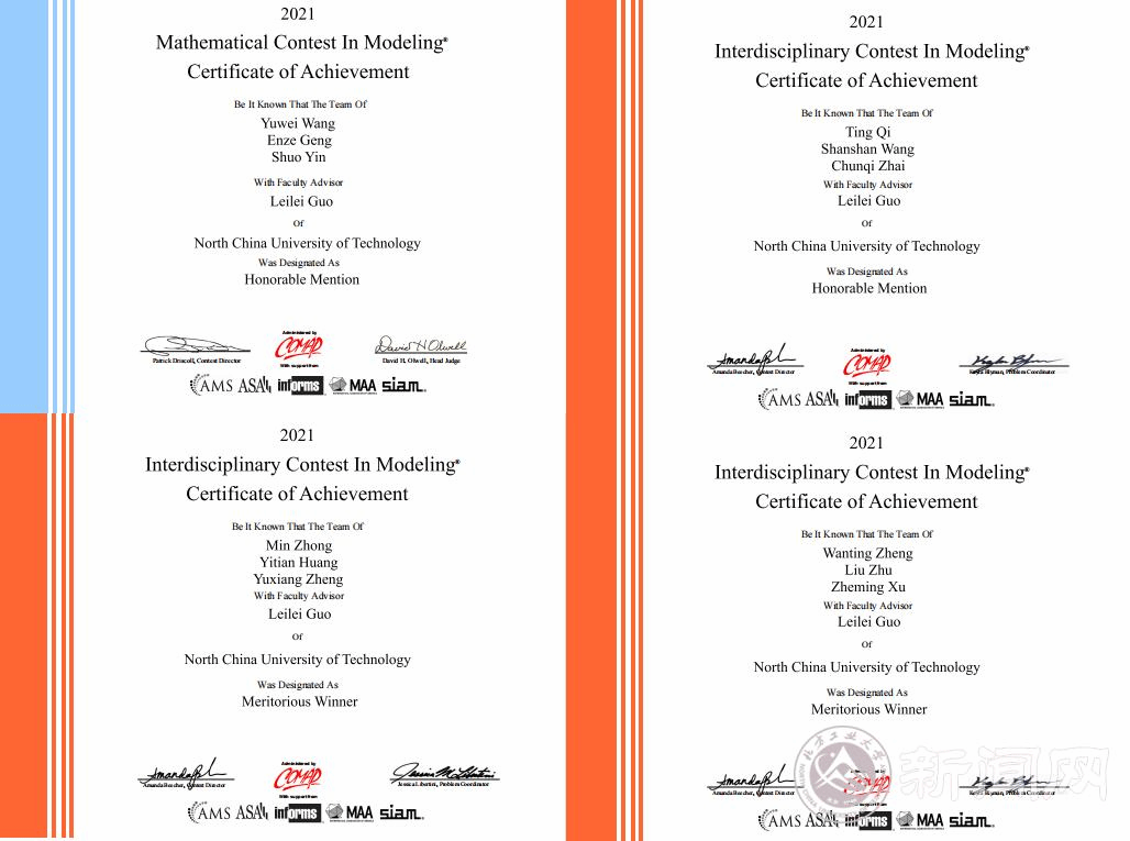 近日,由美國數(shù)學(xué)及其應(yīng)用聯(lián)合會主辦的2021年國際大學(xué)生數(shù)學(xué)建模競賽(MCM/ICM)成績揭曉。我校有7個代表隊參賽,共獲得一等獎(Meritorious Winner)2項、二等獎(Honorable Mention)2項。