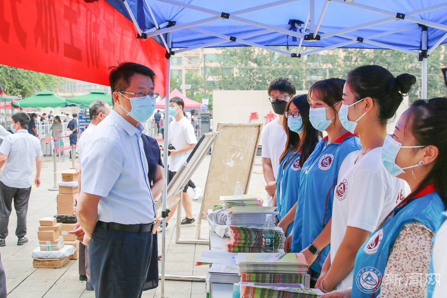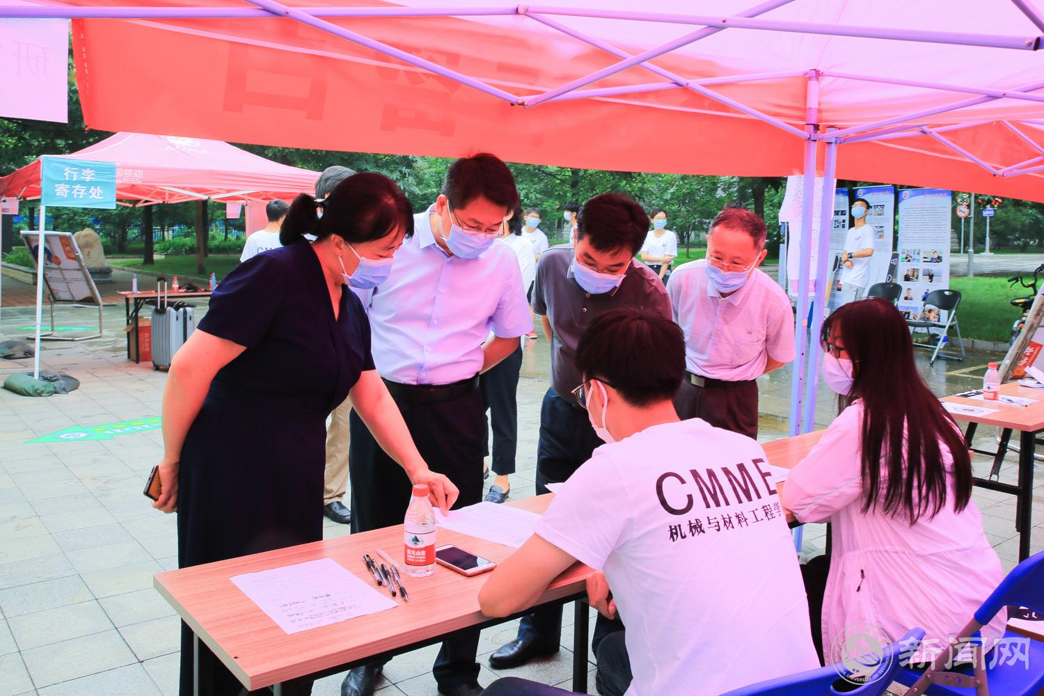 在校北門,繆勁翔一行檢查了疫情檢測和校園安全情況,詳細了解了北門新生服務站的工作情況,并慰問了學生志愿者。