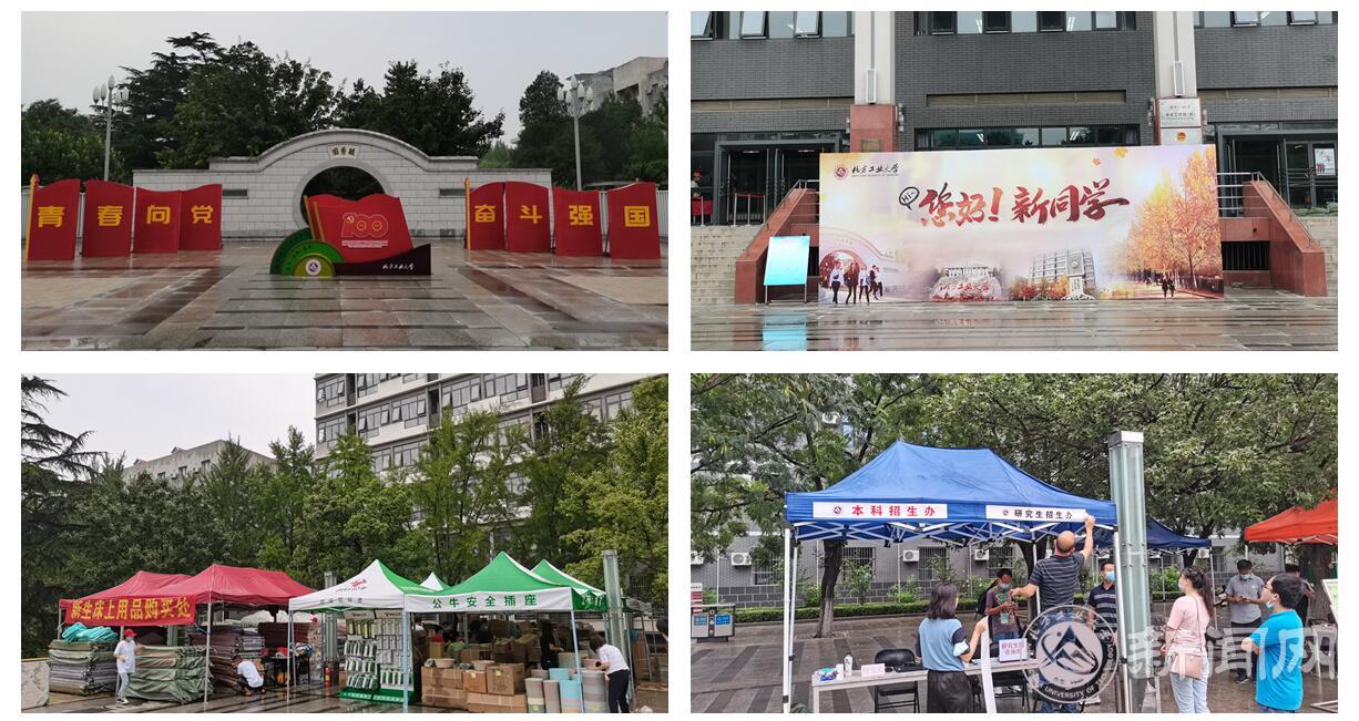 清晨,各學院和職能部門的迎新點就已經就位,老師、學生志愿者和后勤工作人員開始緊張忙碌起來,為迎接新同學步入新家做好準備。