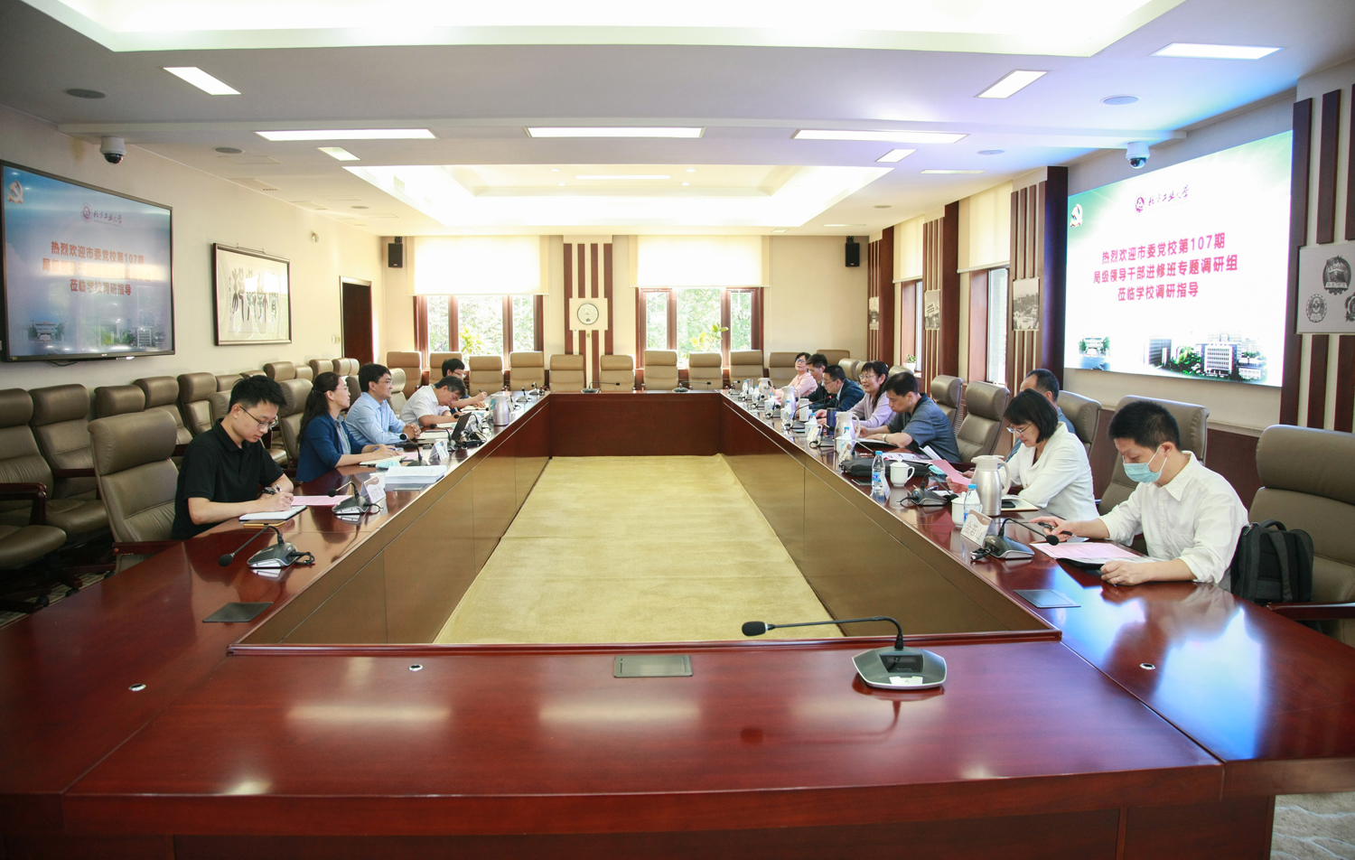 9月27日上午,北京市第107期局級領導干部進修班全面依法治市調研組蒞臨我校,圍繞“堅持法治思維高質量推動首都紀檢監察工作”專題調研學校紀檢監察工作。調研組由市紀委市監委第十六審查調查室主任吳斌等八人組成,我校黨委常委、紀委書記馬春成以及學校專職紀檢監察干部參加調研。調研開始前,校黨委書記繆勁翔會見了調研組一行,對調研組來校調研指導工作表示歡迎。