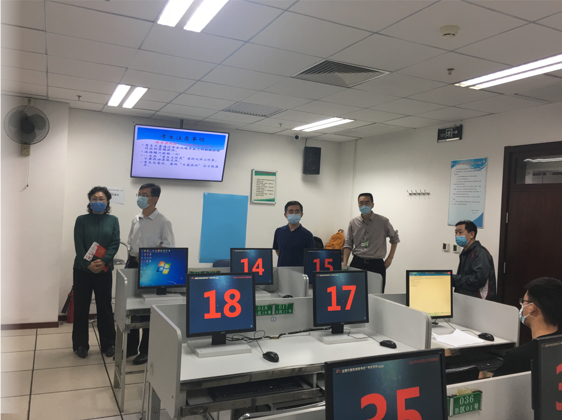 本次考試共計(jì)2400人次參加,人數(shù)創(chuàng)我校組織該項(xiàng)考試新高。考生來(lái)源主要包括我校學(xué)生、周邊社會(huì)考生和北京軍區(qū)的軍人,對(duì)提高我校學(xué)生計(jì)算機(jī)應(yīng)用能力和服務(wù)北京、服務(wù)軍隊(duì)具有重要意義。栗蘋副校長(zhǎng)詳細(xì)詢問(wèn)了考生來(lái)源、防疫工作、考務(wù)管理等方面的組織工作,并對(duì)每個(gè)考場(chǎng)以及備用考場(chǎng)進(jìn)行了巡視。教務(wù)處和信息學(xué)院主要負(fù)責(zé)人陪同作現(xiàn)場(chǎng)指導(dǎo)。