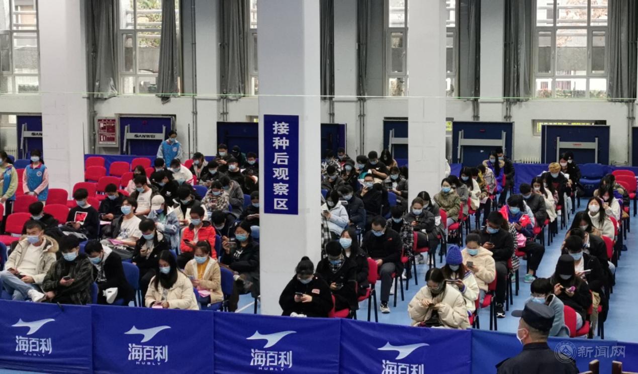各學院迅速行動,副書記、輔導員等第一時間到達現場,組織學生有序進場、填表、詢問、登記、接種、留觀等各項工作。當日下午,已有1000余名師生完成了接種。