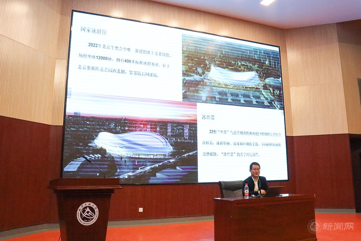 李向南以《智能智造與科技冬奧—以國家速滑館為例》為題,以智能智造及工業4.0的背景下的科技冬奧講起,介紹了國家速滑館被命名為“冰絲帶”的由來,進而從外觀設計、結構體系、施工方案、創新科技和節能環保等方面詳細介紹了智能建造新技術在整個施工過程中的智能化應用。他特別介紹了“冰絲帶”建設過程中,技術團隊不斷創新設計和施工方法,攻克各種技術難題,彰顯土木人的智慧、科技創新精神和科技報國情懷。他鼓勵同學們在校期間要打好基礎,多了解行業現狀,找準專業精尖點,不斷努力學習,讓自己具有更多的可能性,以適應飛速發展的時代需求。