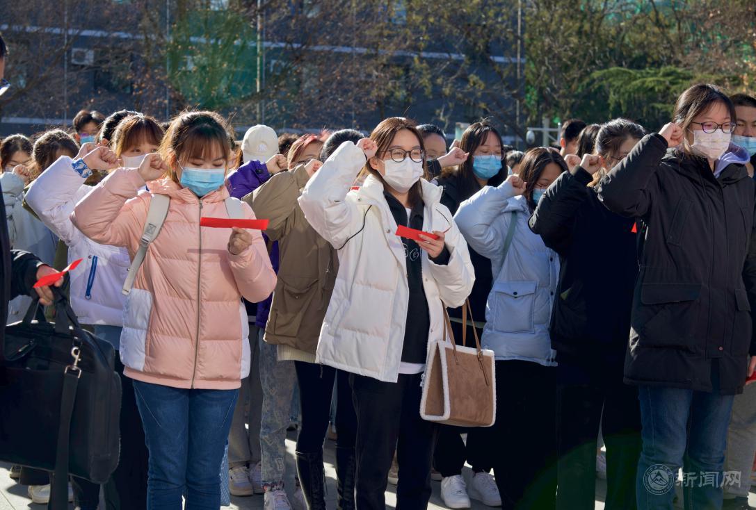 百余名青年學生在領誓人的帶領下,進行憲法宣誓,感受憲法權威,向黨和人民做出莊嚴承諾。
