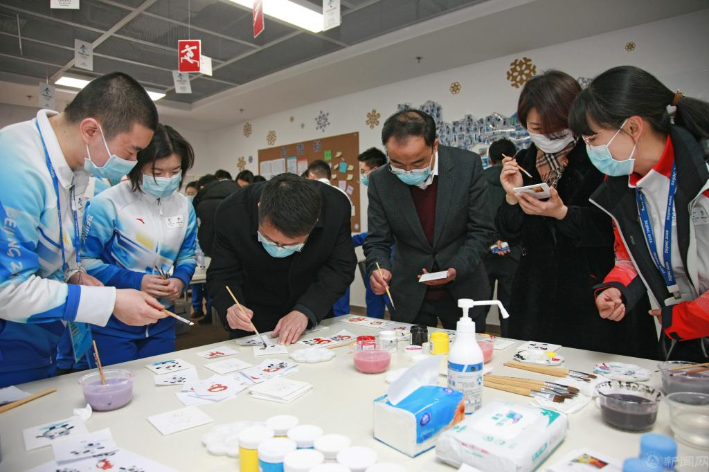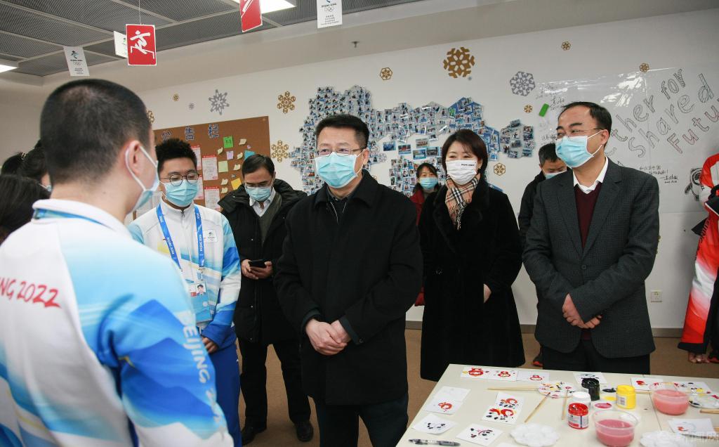 繆勁翔一行在冬奧組委志愿者部副部長張麗娜、北京制服和注冊中心秘書長余青的陪同下,走訪數據證件制證車間、工作人員注冊以及制服發放等各業務領域工作場館,看望慰問了我校在冬奧會籌備工作一線服務的借調干部和賽會志愿者。在與我校冬奧志愿者的親切交流中,繆勁翔詳細詢問他們的工作、學習、生活情況,勉勵同學們在冬奧志愿服務工作中展現新時代中國青年的良好風貌。在制服和注冊中心志愿者之家,學校領導與志愿者們一同參加了冬奧會主題繪畫和泥塑活動。