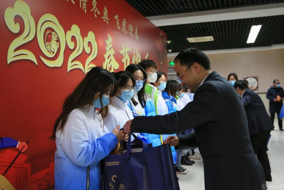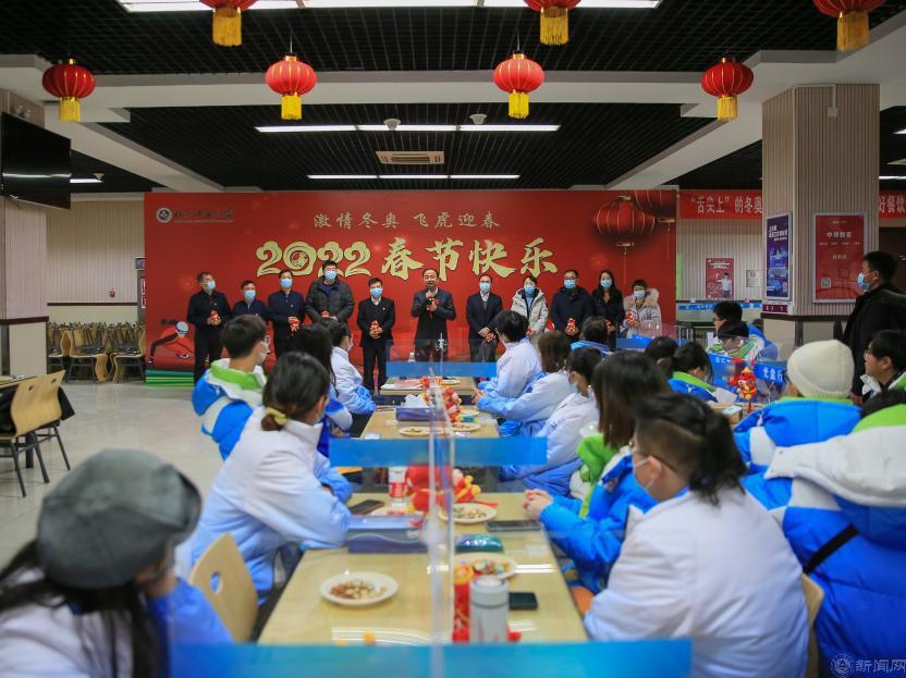 寅虎慶新春,激情迎冬奧。1月25日下午,毓秀餐廳一層張燈結(jié)彩、其樂融融。正值農(nóng)歷小年,黨委常委、副校長王力來到現(xiàn)場,與百余名冬奧志愿者及留校學生歡聚一堂,在“家”過年,共話收獲喜悅,共慶新春佳節(jié)。