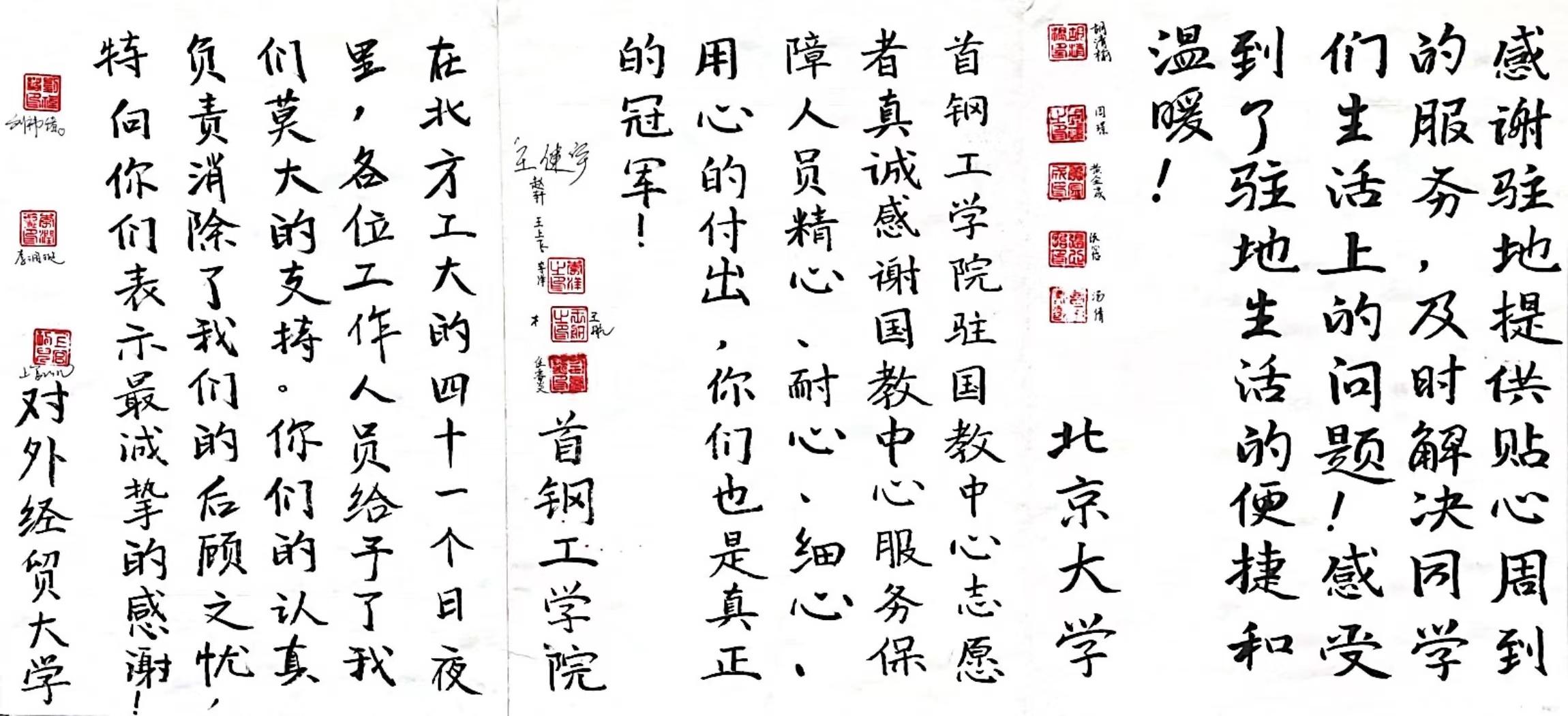 我校國教中心作為首鋼滑雪大跳臺閉環志愿者的賽時駐地,是承擔此項任務的唯一市屬高校。學校黨委和行政高度重視閉環保障任務,全面統籌、周密部署,全力以赴做好駐地服務保障工作。學校積極與冬奧市級專班、石景山區聯絡對接聯絡,對駐地周邊進行了系統規劃和改造,克服重重困難為志愿者打造了既便捷又安全的閉環環境;對國教中心進行了改造升級,大幅度提升入住體驗,打造暖心、溫馨、舒心的志愿者之家;校領導親切關懷慰問,春節前夕黨委書記繆勁翔、校長張立峰及班子成員連線服務保障工作團隊,送去溫暖的新春祝福。學校服務中心、后勤基建處、安穩部、網信等部門通力合作,源源不斷為環內供應物資,提供技術保障和配套服務,構建了堅實的大后方。