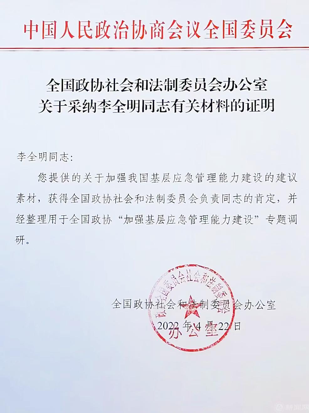 接到委托后,我校成立調研組抽調力量快速收集資料、認真調查分析、積極組織研討,充分發揮專業優勢,撰寫完成了調研報告《我國基層應急管理能力現狀及建議》。報告從強機構、強統籌;拉隊伍、重培訓;壓監管、抓整治;強保障、除短板等四大方面提出了加強應急管理能力的具體對策意見,得到全國政協社會和法制委員會辦公室的肯定,最終被采納。