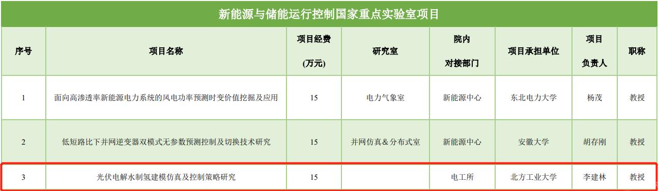 近日,由我校北方工業大學儲能技術工程中心作為承辦單位之一的“光伏電解水制氫建模仿真及控制策略研究”項目成功獲批新能源與儲能運行控制國家重點實驗室開放基金項目。