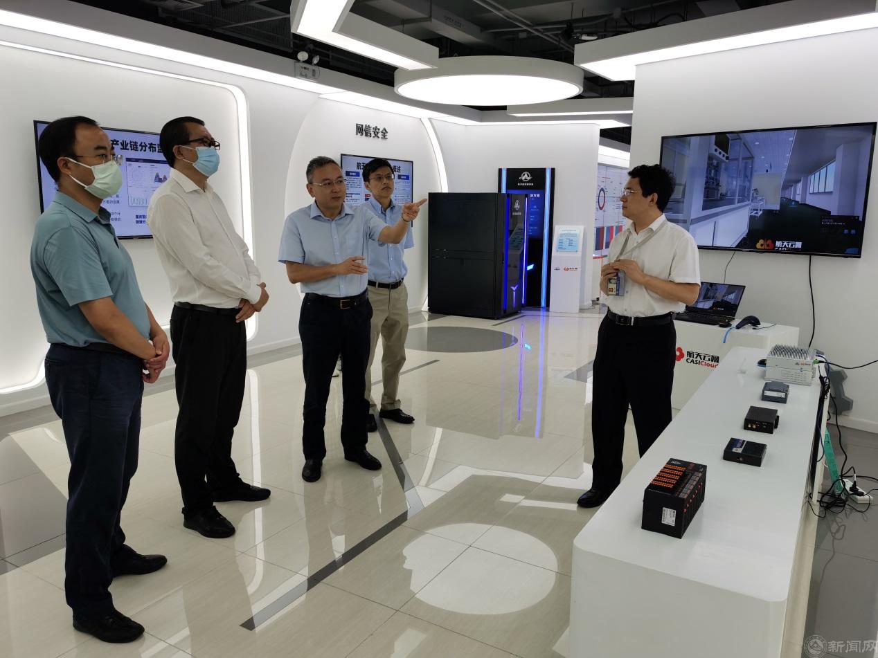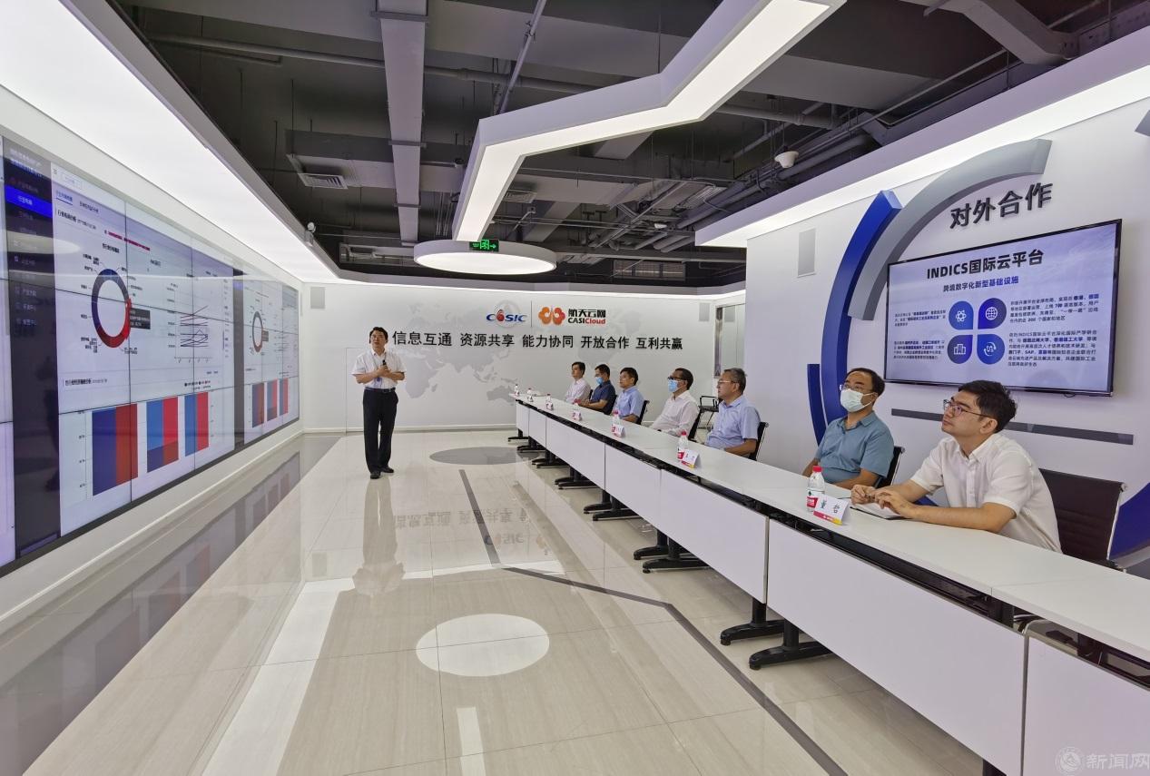會前,張立峰一行參觀了基于INDICS平臺的智能工廠示范樣板間、航天云網展示體驗中心。柴旭東全程陪同,詳細介紹了航天云網INDICS平臺生態體系、核心業務和主要業績,特別是在工業大數據、產教融合、智能制造、智能工廠、智慧云制造服務和行業解決方案等方面情況。國際部部長陳碩、經營管理部副部長(主持工作)宋玉彬隨同講解。