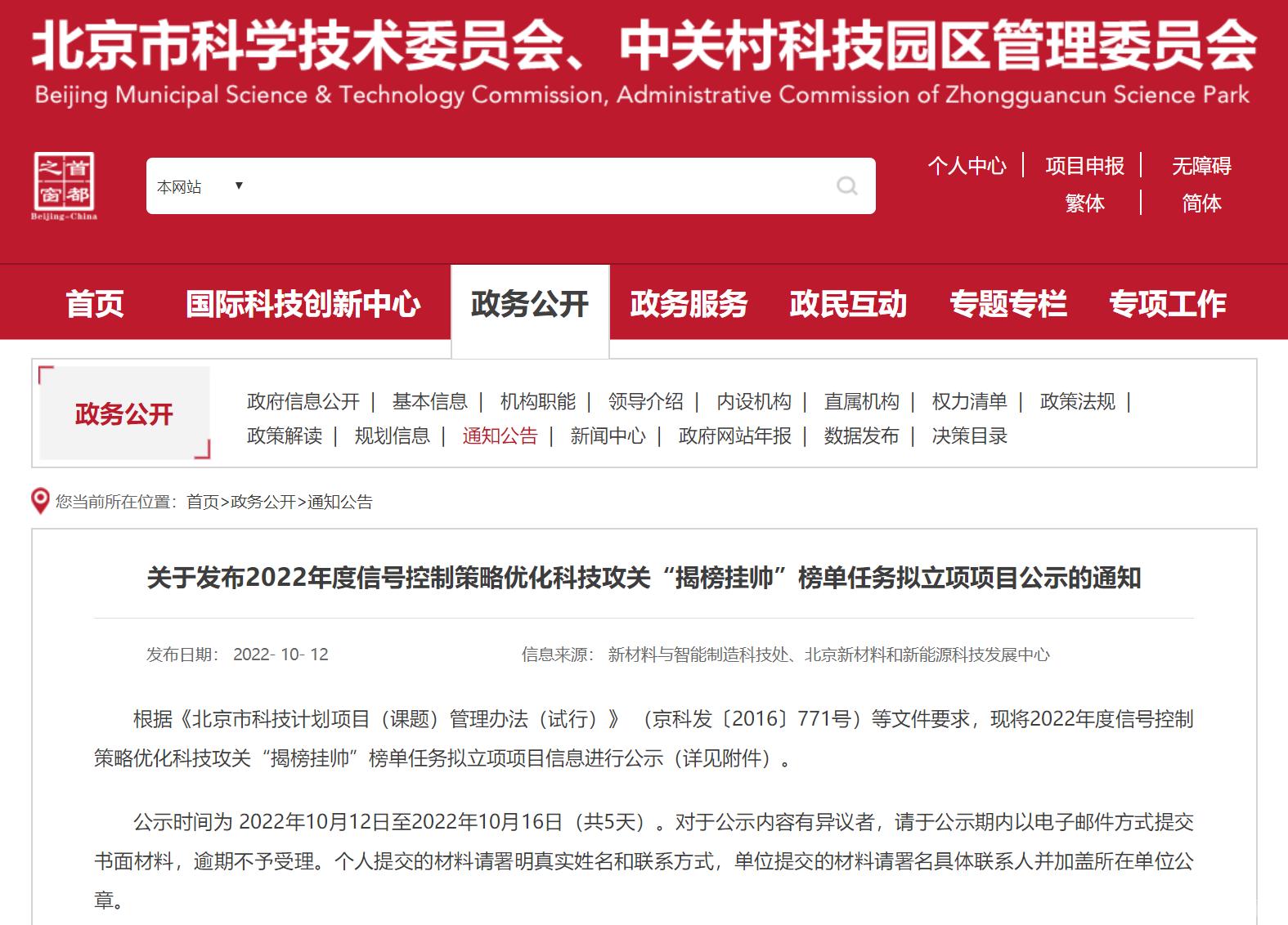 10月12日,北京市科委公示了2022年度信號控制策略優化科技攻關“揭榜掛帥”擬立項目名單,我校智能交通科研團隊聯合北京高鴻智聯科技有限公司、北京百度網訊科技有限公司和智慧足跡數據科技有限公司共同申報的“智能網聯數據驅動的城市交通信號控制優化關鍵技術及應用”項目成功入選。