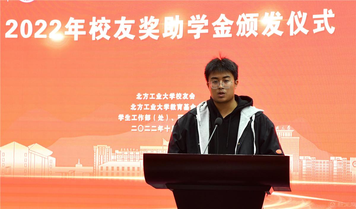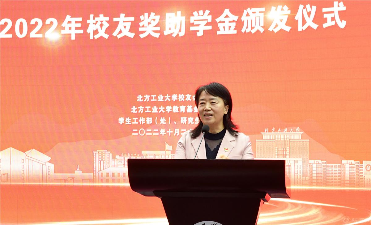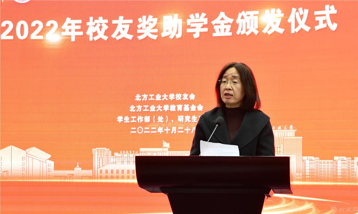 田紅芳向捐資助學(xué)的校友們表示感謝,向獲獎師生表示祝賀。她表示,自校友會成立以來,廣大校友心系母校,反哺助力母校事業(yè)發(fā)展,學(xué)校會銘記校友們的善舉,也希望越來越多的北方工大人傳承和弘揚這種大愛。她要求,廣大師生要認(rèn)真學(xué)習(xí)宣傳貫徹黨的二十大精神,充分領(lǐng)悟習(xí)近平總書記“教育、科技、人才是全面建設(shè)社會主義現(xiàn)代化國家的基礎(chǔ)性、戰(zhàn)略性支撐”等重要論述的科學(xué)內(nèi)涵,為加快建設(shè)教育強國、科技強國、人才強國,實現(xiàn)中華民族偉大復(fù)興做出北方工大人應(yīng)有的貢獻。她希望,廣大教師要繼續(xù)發(fā)揚業(yè)精善學(xué)、敬業(yè)愛生、修身立德的優(yōu)良傳統(tǒng),以德立身、以德立學(xué)、以德施教,嚴(yán)愛相濟、潤己澤人,爭當(dāng)新時代的優(yōu)秀引路人、大先生,培養(yǎng)更多堪當(dāng)民族復(fù)興大任的社會主義建設(shè)者和接班人;希望同學(xué)們不負(fù)時代、不負(fù)韶華,堅定不移聽黨話、跟黨走,懷抱夢想又腳踏實地,敢想敢為又善作善成,立志做有理想、敢擔(dān)當(dāng)、能吃苦、肯奮斗的新時代好青年,讓青春在全面建設(shè)社會主義現(xiàn)代化國家的火熱實踐中綻放絢麗之花。