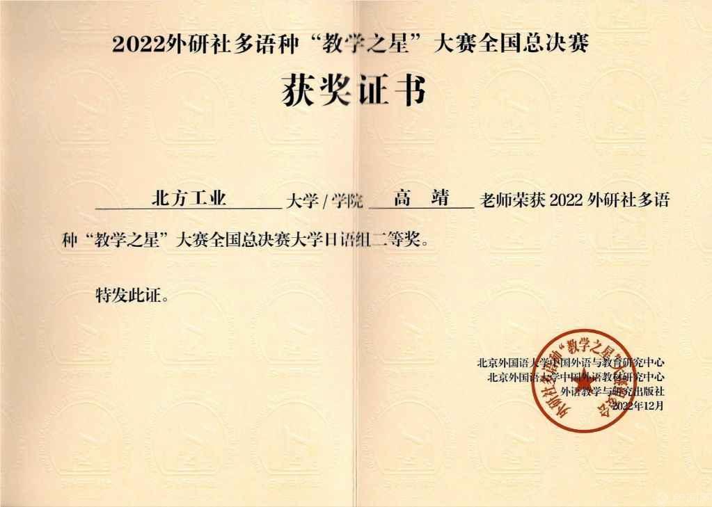 日前,2022外研社多語種“教學之星”大賽全國總決賽日語組比賽以線上線下相結(jié)合的方式舉行,我校文法學院日語系教師高靖在比賽中喜獲二等獎。
