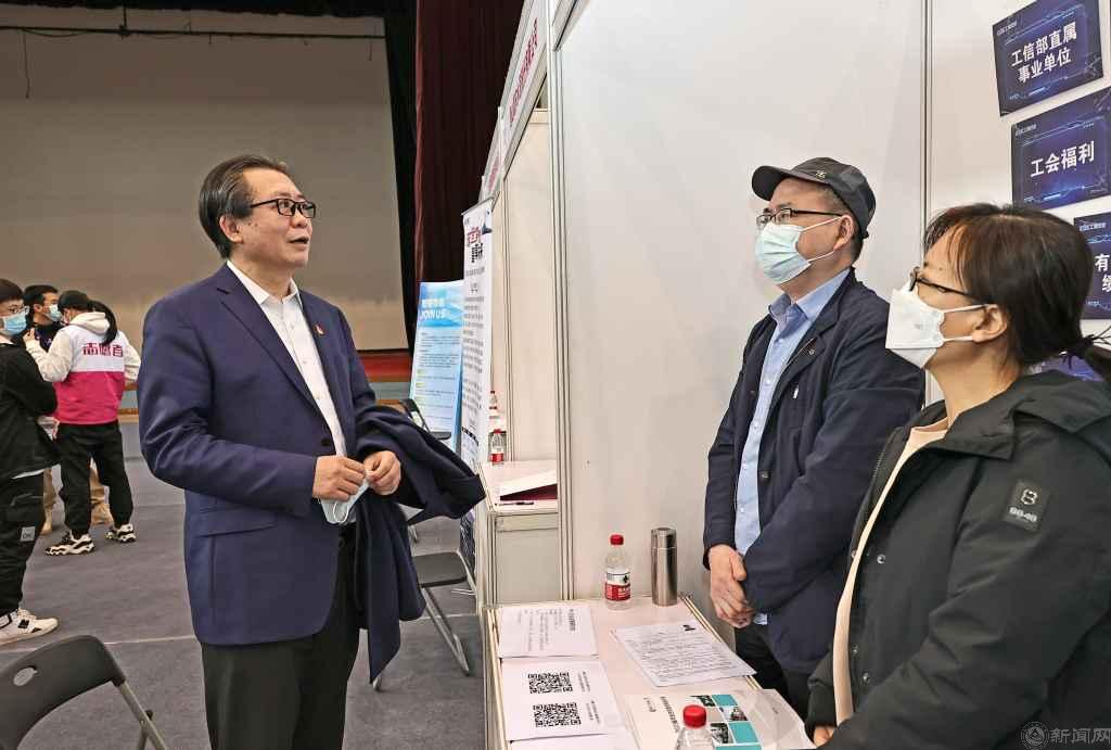 3月15日下午的雙選會由我校與市人社局合作舉辦,北京市熱力集團、金隅房地產開發集團、北京公交集團、北京市政集團、北京城建集團、北京住總集團、北京市地鐵運營有限公司等100家企業參加。北京市就業促進中心主任崔永剛,校黨委常委、紀委書記馬春成來到招聘現場,與用人單位進行溝通交流,了解用人單位招聘情況、人才需求情況和畢業生求職狀況。市就業促進中心,石景山區人力資源公共服務中心相關負責同志也一同參加了調研。