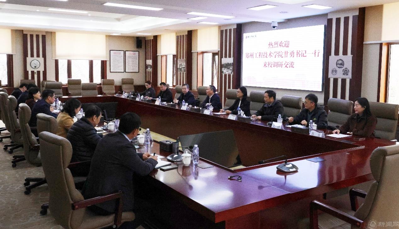 3月23日,鄭州工程技術學院黨委書記甘勇、副校長李欣一行8人來我校調研交流,校黨委書記繆勁翔熱情接待來訪客人,黨委常委、副校長栗蘋出席座談會。