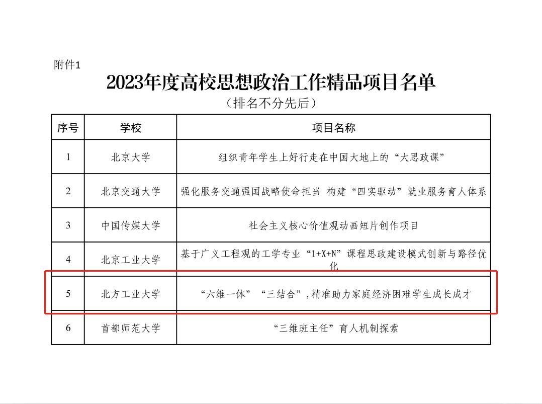 據悉,全國共有100所高校的100個項目入選2023年度高校思想政治工作精品項目,北京市共有6個項目入選。
