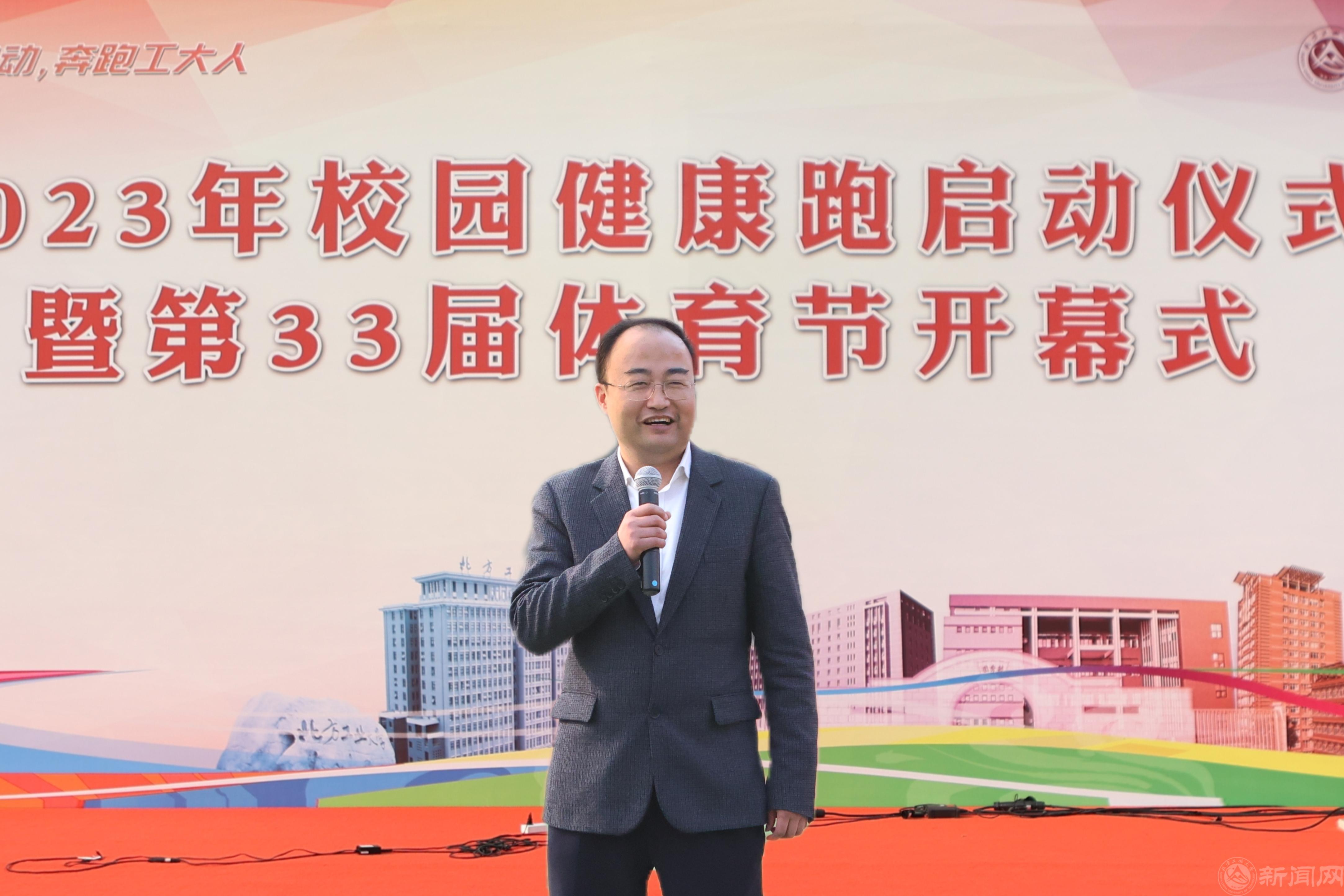 王力宣布2023年校園健康跑活動啟動和第33屆體育節開幕,并作動員講話。他鼓勵同學們走下網絡、走出宿舍、走向操場,通過跑步讓自己享受獨處靜思,放松身心;他希望同學們樹立“每天鍛煉一小時,健康工作五十年,幸福生活一輩子”的理念,自發鍛煉,強身健體;他強調,在全校上下學習二十大、奮進新征程、奔跑向未來的關鍵之年,廣大青年學子要通過體育鍛煉帶動勤奮優良學風、自律生活作風、健康向上校風,充分迸發工大人的青春活力,展現工大人的蓬勃朝氣。