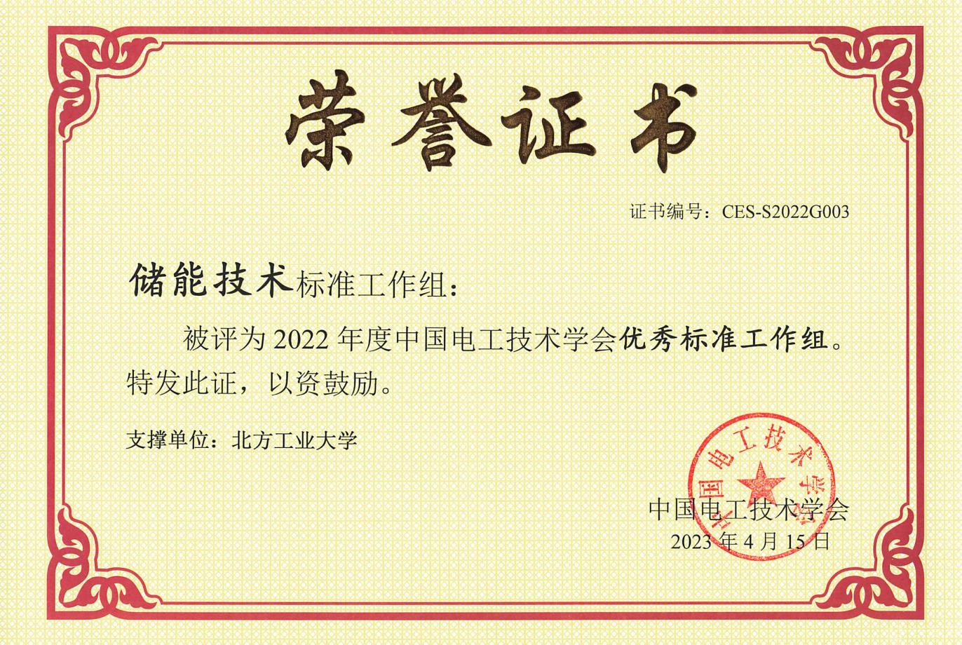 近日,中國電工技術學會公布《關于表彰2022年度中國電工技術學會優秀標準工作組及標準化工作先進個人的決定》,我校作為中國電工技術學會儲能技術標準專業分會支撐單位,喜獲“2022年度中國電工技術學會優秀標準工作組”。