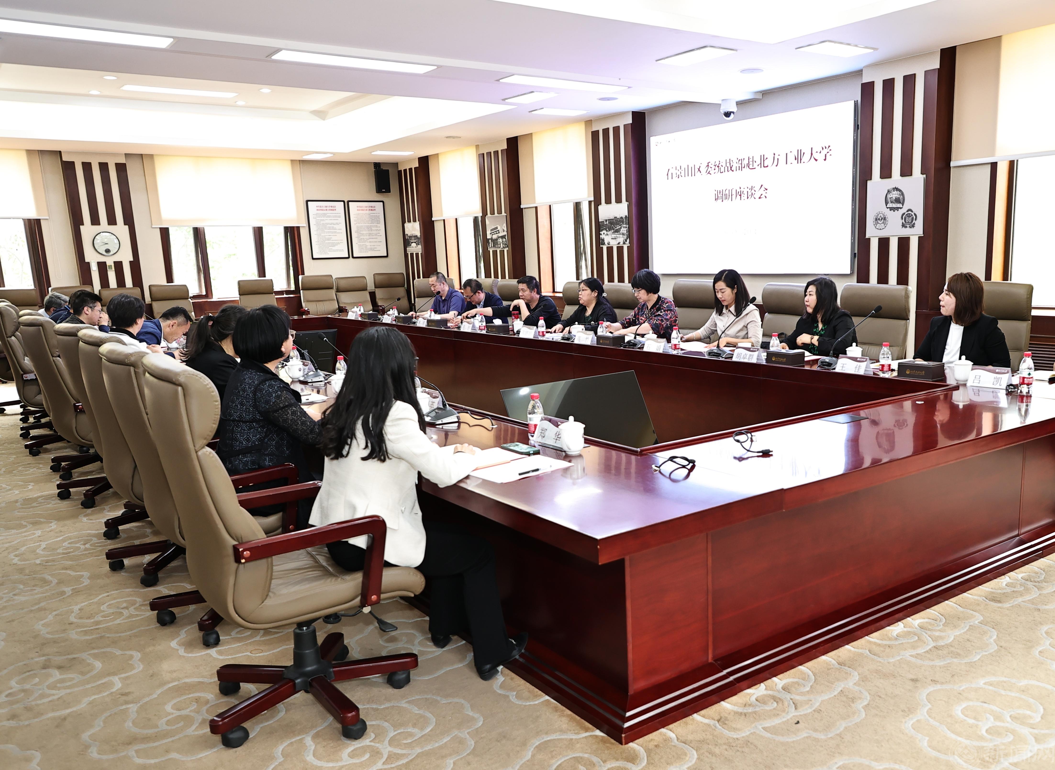 5月11日,石景山區委常委、統戰部部長陳婷婷一行來我校就促進區域化統戰工作聯盟建設開展調研。區委統戰部分管日常工作的副部長高竹,區委統戰部副部長石娟、林棟,民盟區工委主委毛軒,九三學社區工委副主委胡卓群,區知聯會副會長紀愛華陪同調研。黨委副書記田紅芳,黨委組織部部長、統戰部部長何裕,以及學校民主黨派、無黨派代表人士參加座談交流。