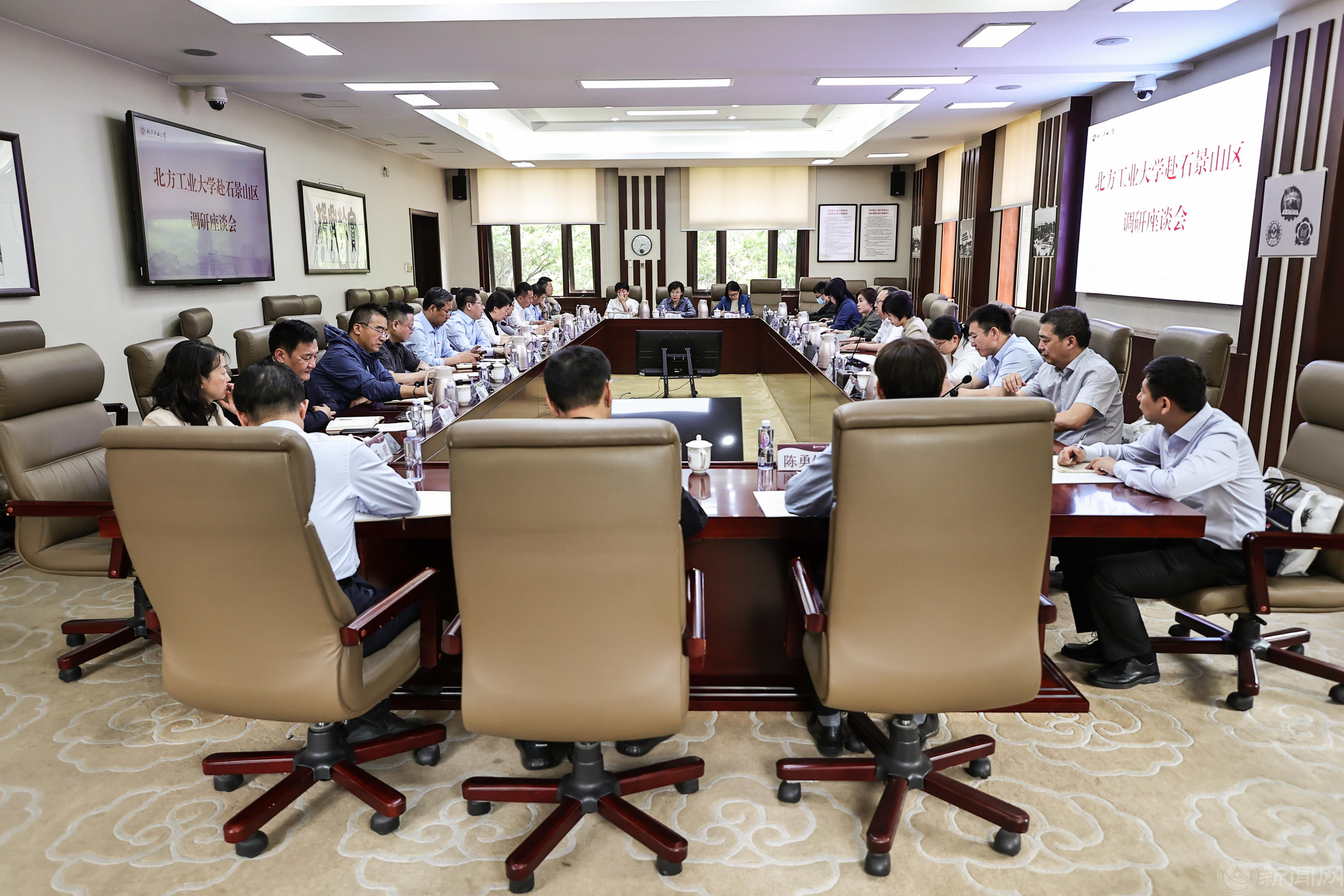 按照學校主題教育工作安排和黨委調查研究工作部署,5月11日,校黨委書記繆勁翔主持召開深化校區合作、服務區域高質量發展調研座談會,邀請石景山區委區政府研究室、教工委、科委、司法局、市規自委石景山分局、經信局、文旅局、八角街道黨工委、中關村石景山園管委會等部門負責人入校研討,聽取他們對學校服務地區高質量發展的“需求”和促進區校交融共生、共建共享、協同發展的“建議”。學校領導班子成員、相關部門和二級單位負責人參加座談會。