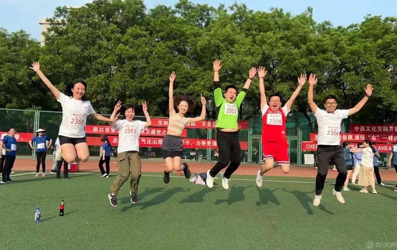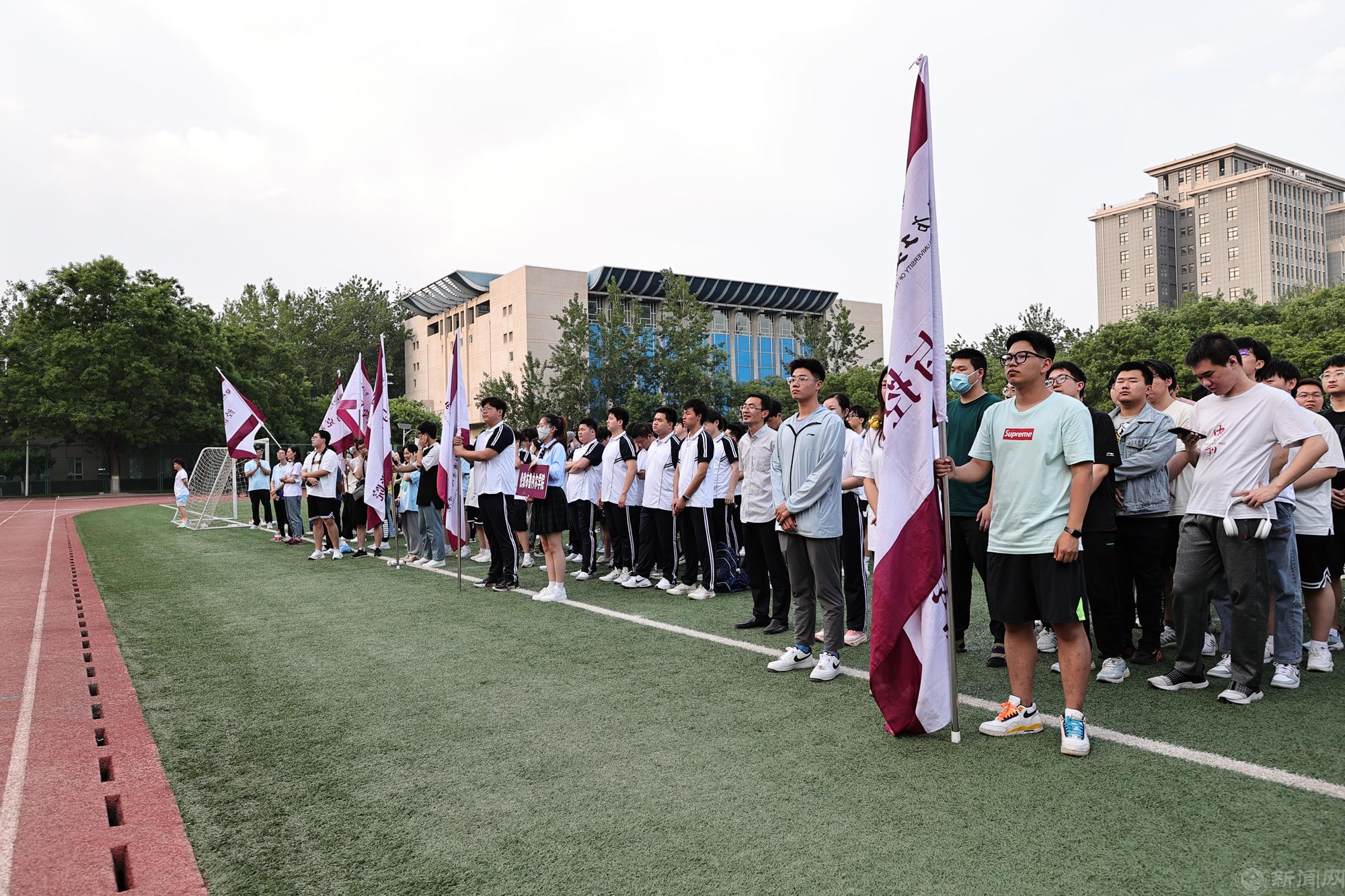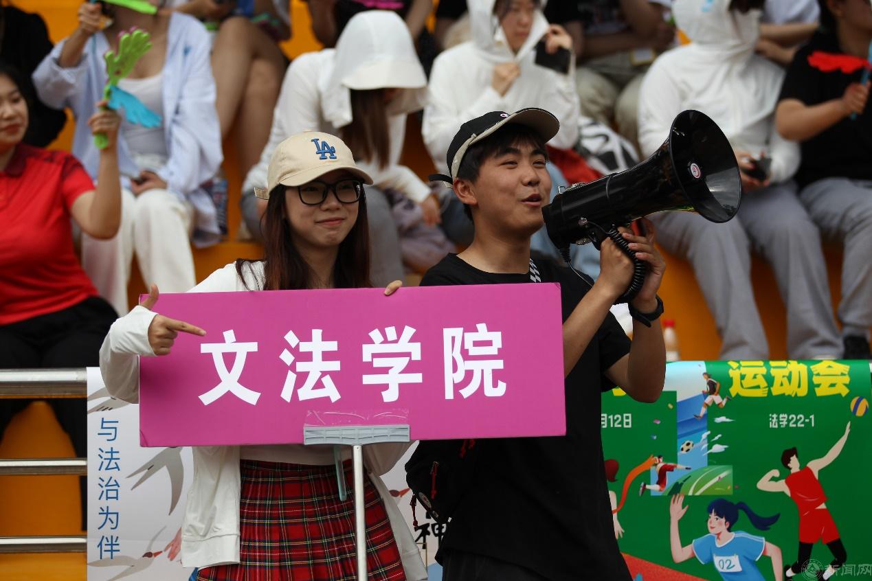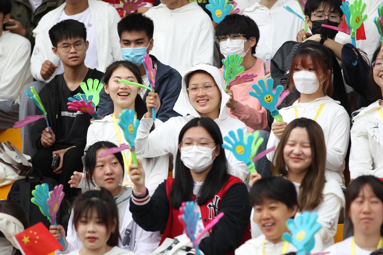 觀眾看臺上五彩斑斕,各學院院旗隨風舞動,鼓聲、口號聲、吶喊聲此起彼伏,運動場上洋溢著激情、文明、和諧的氛圍。