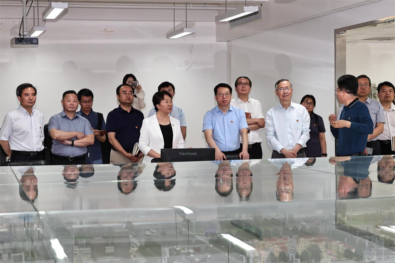 指導組和學校領導班子一行首先來到土木工程學院,聽取北方工業大學新興風險研究院建設情況的匯報,調研新型建筑工業化集成建造工程技術研究中心、風險防控與應急管理智能化實驗室和虛擬仿真實驗室建設情況,詳細了解學院整合學校科研及社會優勢資源,扎實推進城市系統工程與風險治理專業智庫基地建設,深度服務京西城市更新、北京市智慧城市建設的典型做法和工作建議,與學院共同研討智庫基地建設和創新人才培養的具體舉措。