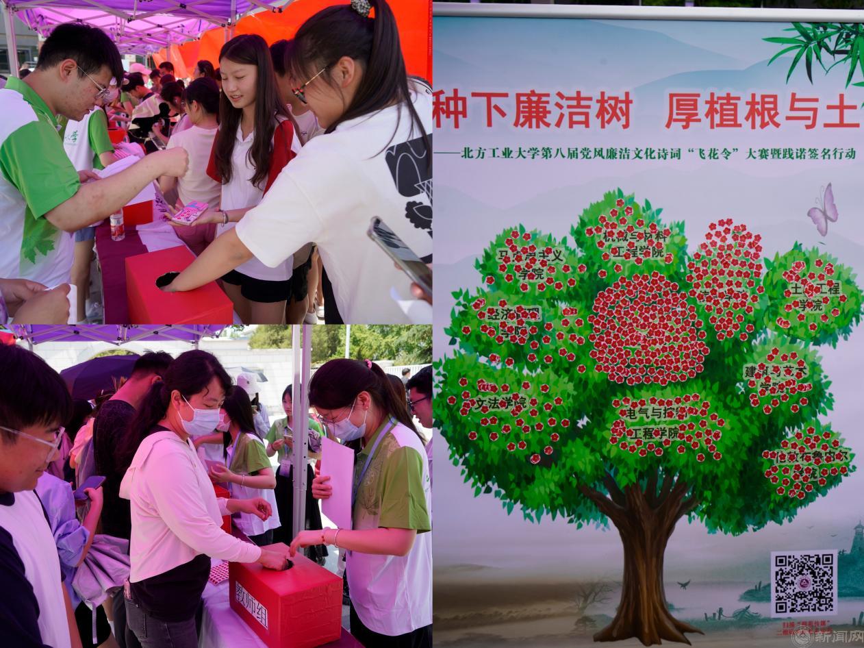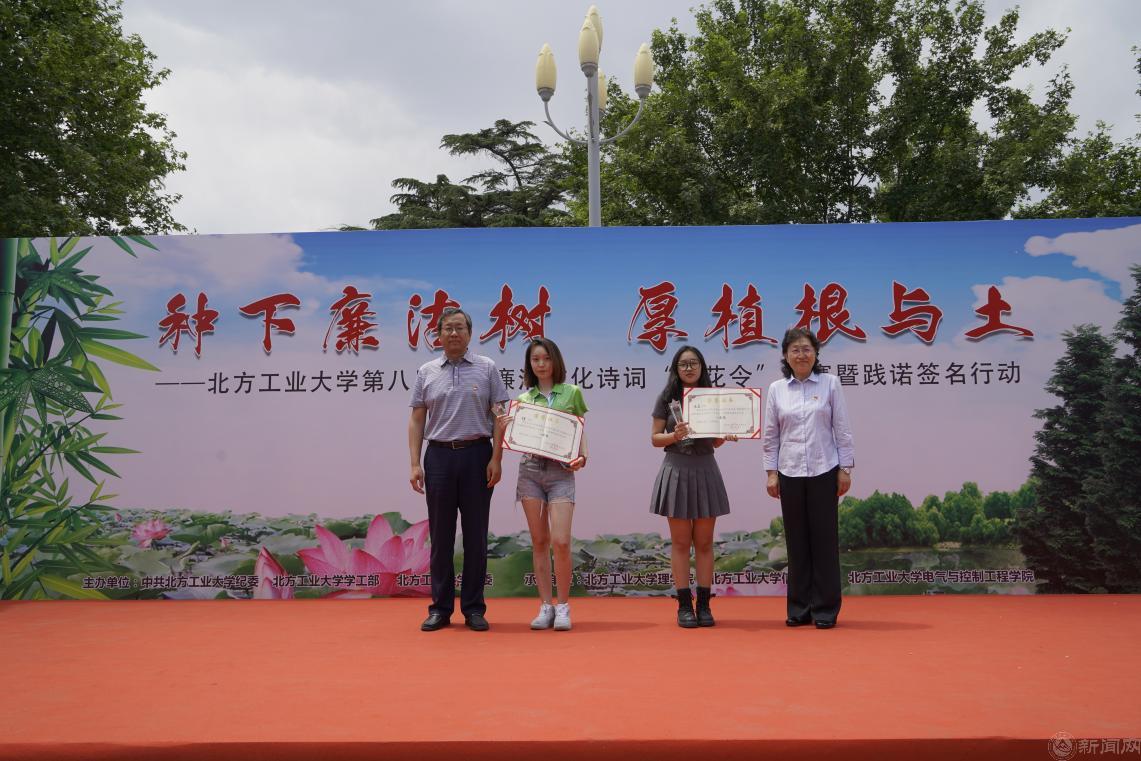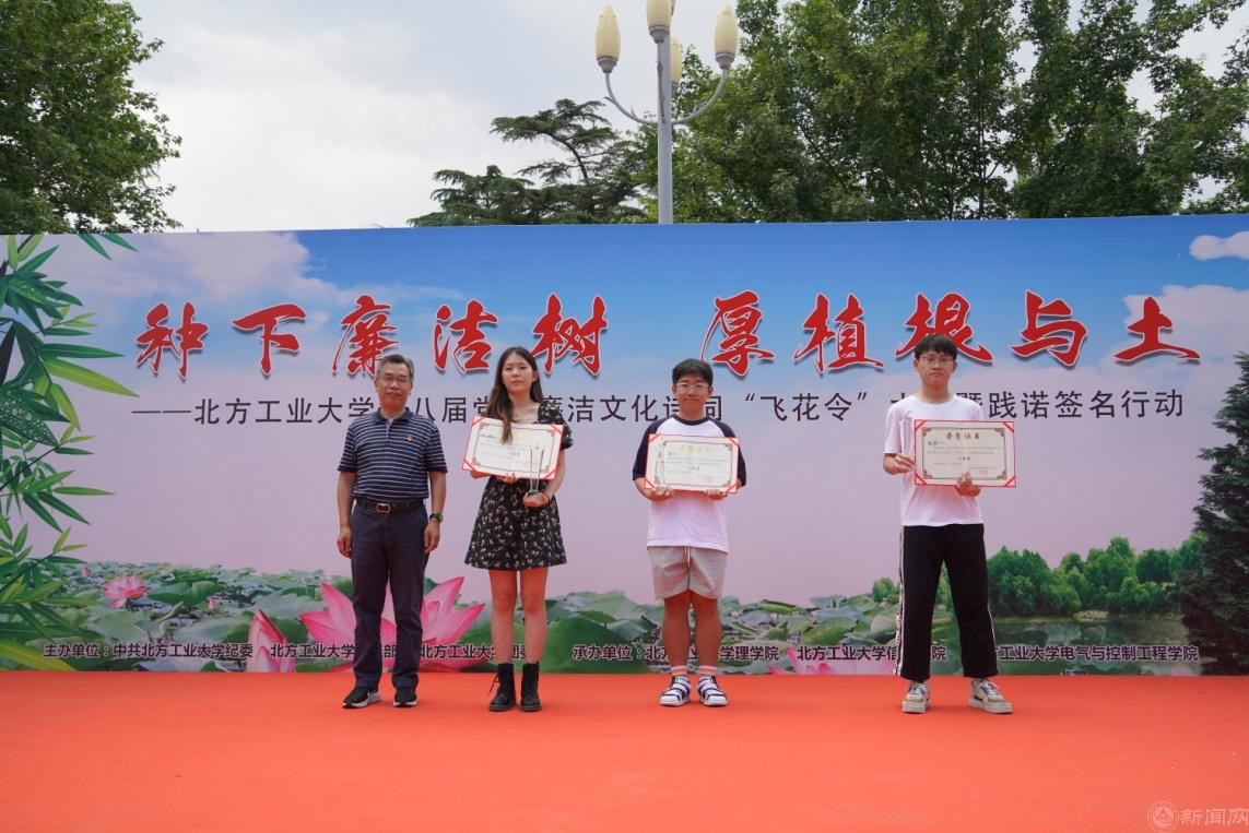 6月7日中午,由校紀委、學工部、校團委主辦,理學院、信息學院、電氣與控制工程學院聯合承辦的“種下廉潔樹,厚植根與土”——北方工業大學第八屆黨風廉潔文化詩詞“飛花令”大賽暨踐諾簽名行動在毓秀廣場隆重舉行。校黨委副書記史貞軍,校黨委常委、副校長栗蘋,校紀委、學工部、校團委、各學院負責人和師生代表共500多人參加了活動。