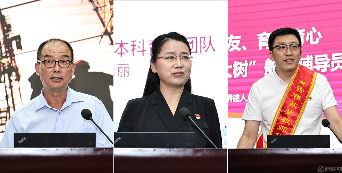 教師代表杜春濤、吳文祥、馬欣、葛燕鋒、魏秀麗、李旭分享了育人故事。有的緊扣數(shù)字時(shí)代教學(xué)要求推進(jìn)慕課建設(shè),為學(xué)生提供多元化個(gè)性化教學(xué)資源;有的20余年奮斗教學(xué)科研一線,激發(fā)學(xué)生潛力,指導(dǎo)學(xué)生科研,與學(xué)生亦師亦友、共同成長;有的立足專業(yè)教學(xué),以指導(dǎo)學(xué)生職業(yè)道德和專業(yè)發(fā)展規(guī)劃為特色手段,推動(dòng)學(xué)生才德并進(jìn);有的以實(shí)踐教學(xué)為抓手,著力培養(yǎng)學(xué)生成長為滿足行業(yè)需求的高素質(zhì)應(yīng)用型人才;有的和團(tuán)隊(duì)成員合力打造優(yōu)勢教學(xué)團(tuán)隊(duì),共同堅(jiān)守教書育人初心,強(qiáng)夯實(shí)立德樹之根本;有的注重育人育心,堅(jiān)持做“大樹”般的輔導(dǎo)員,與學(xué)生一同向陽生長。這些故事從不同層面展現(xiàn)了學(xué)校教師踐行“躬耕教壇 強(qiáng)國有我”抱負(fù)的生動(dòng)實(shí)踐。