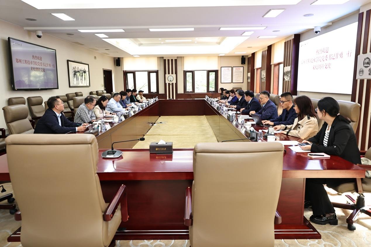 10月8日,鄭州工程技術學院黨委書記甘勇一行來校調研交流,校黨委書記劉軍,黨委常委、副校長栗蘋在敦品樓302會議室接待來賓,進行了座談交流。座談會由栗蘋主持。