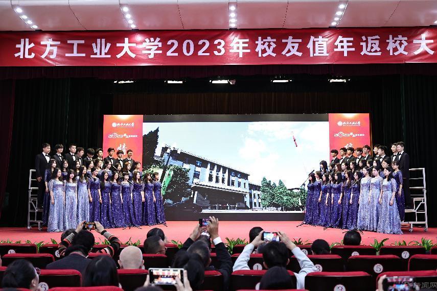 學校領導劉軍、張立峰、王建穩、王力、盧曉斌,原學校黨委書記、校友會會長鄭文堂,校友會副會長王建民以及校友會理事、各地區校友代表與全體返校校友共同唱響《生日快樂歌》,祝福北方工大77歲生日快樂!