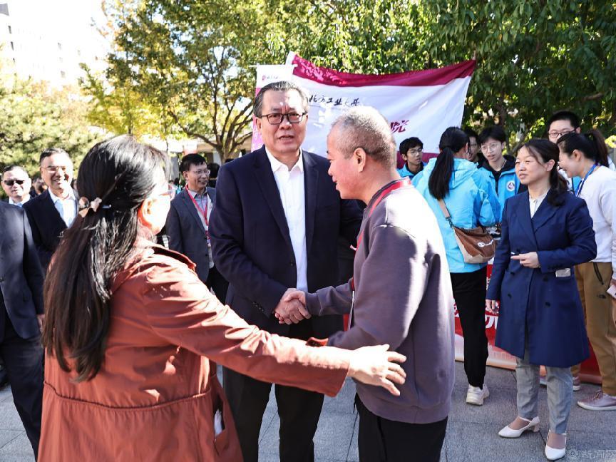 校黨委書記劉軍,黨委副書記、校長張立峰,黨委常委、副校長王建穩、王力,副校長盧曉斌來到報到現場,歡迎校友們回家,與校友進行親切交流,共同暢談北方工大的昨天、今天和明天。