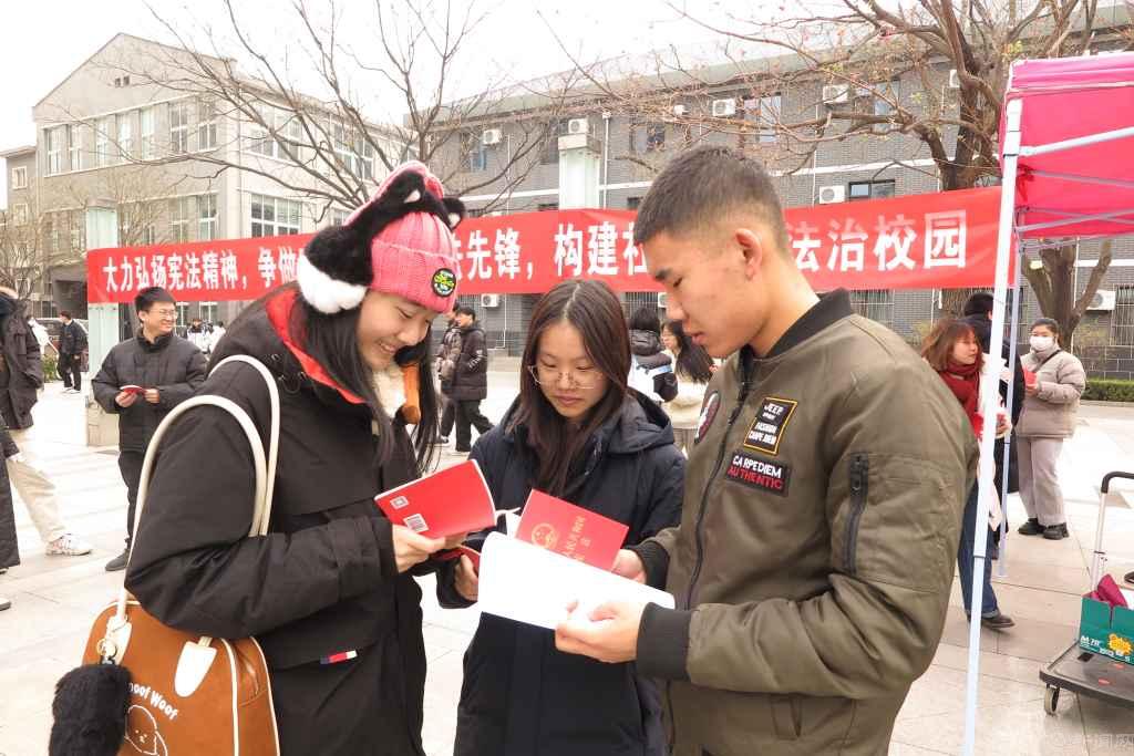 12月4日中午,學校在毓秀廣場組織開展“大力弘揚憲法精神,建設社會主義法治文化”憲法宣傳活動。憲法宣傳“小先鋒”們向來往師生共計發放了200余冊憲法讀本等宣傳材料,為同學們解答憲法相關問題,營造濃厚的憲法學習氛圍。同學們學習熱情滿滿,活動現場氣氛熱烈。
