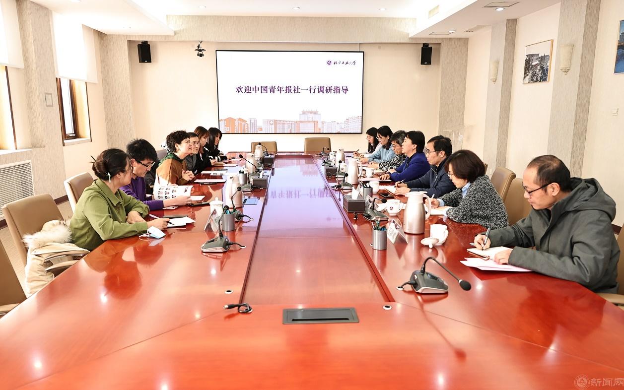 12月7日,中國青年報社黨委委員、工會主席、青年思想研究部主任許革等一行五人來校就青年思想政治工作和新聞宣傳工作進(jìn)行調(diào)研交流,黨委副書記田紅芳,黨委常委、宣傳部部長高國偉接待了來訪客人并進(jìn)行座談。宣傳部、馬克思主義學(xué)院負(fù)責(zé)人參加調(diào)研。