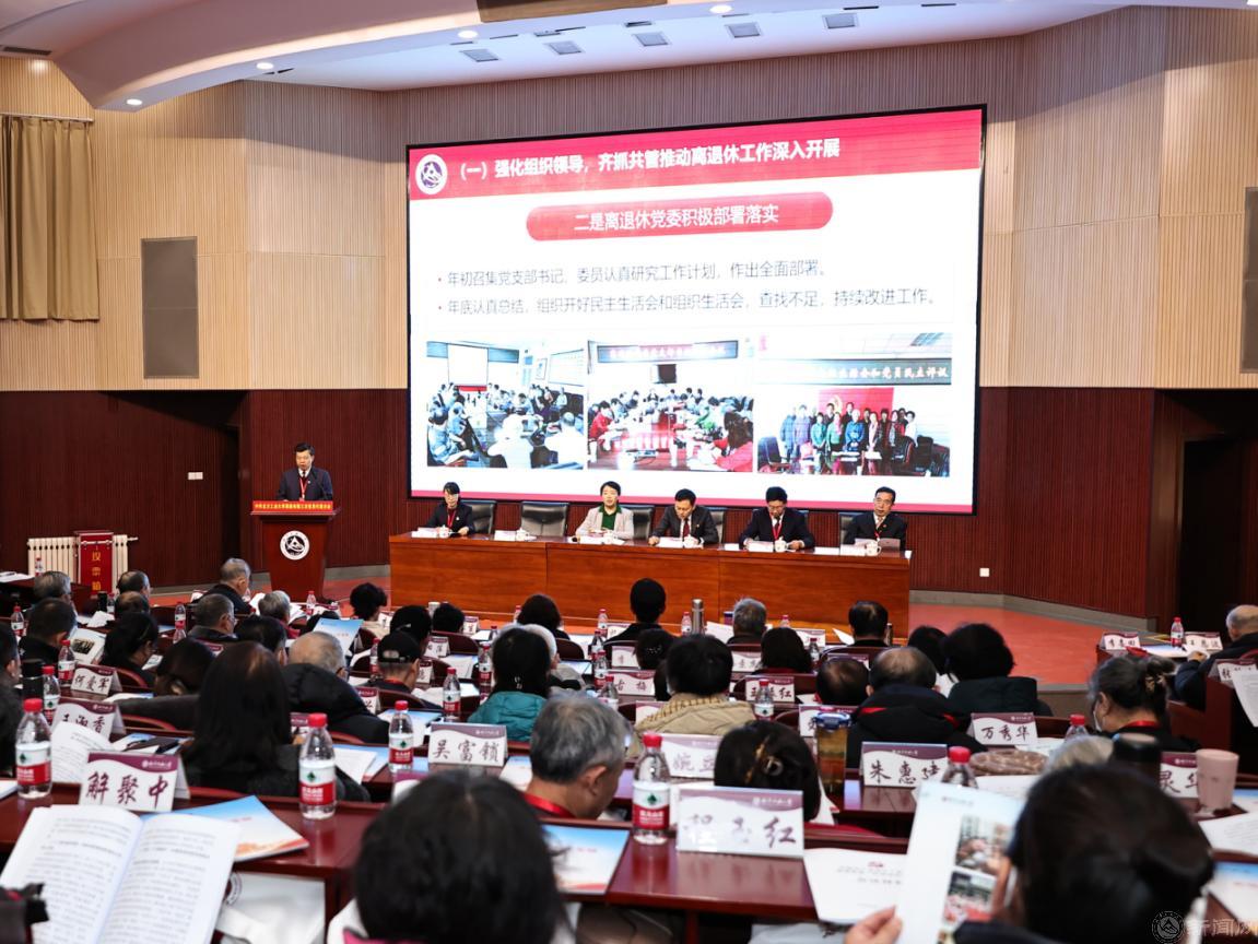 離退休黨委書記趙永兵代表第二屆黨委做題為《加強政治引領、發揮優勢作用,為全面推進新時代離退休工作高質量發展而努力奮斗》的工作報告。他回顧總結了本屆黨委在強化組織領導、“三項建設”、宣傳思想工作、服務關懷、全面從嚴治黨、優勢作用發揮等六個方面的成績,分析了在理論學習、黨支部建設、調查研究和精準服務等方面存在的不足。明確了今后五年的主要任務是:提高政治站位、加強政策學習、加強組織建設、加強激勵關懷、加強業務培訓等五個方面。大會號召,全體離退休教職工要堅決貫徹執行上級黨組織和學校黨委的工作部署,凝心聚力、守正創新、踔厲奮發、勇毅前行,以飽滿的熱情、昂揚的姿態,為學校高水平應用型大學建設做出更大貢獻!