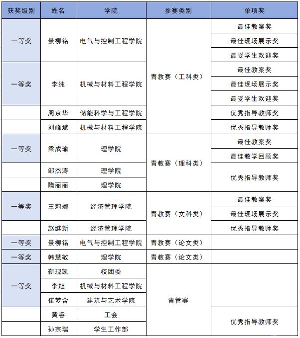 青教賽一等獎(jiǎng)獲獎(jiǎng)教師:電氣與控制工程學(xué)院景柳銘、機(jī)械與材料工程學(xué)院李純