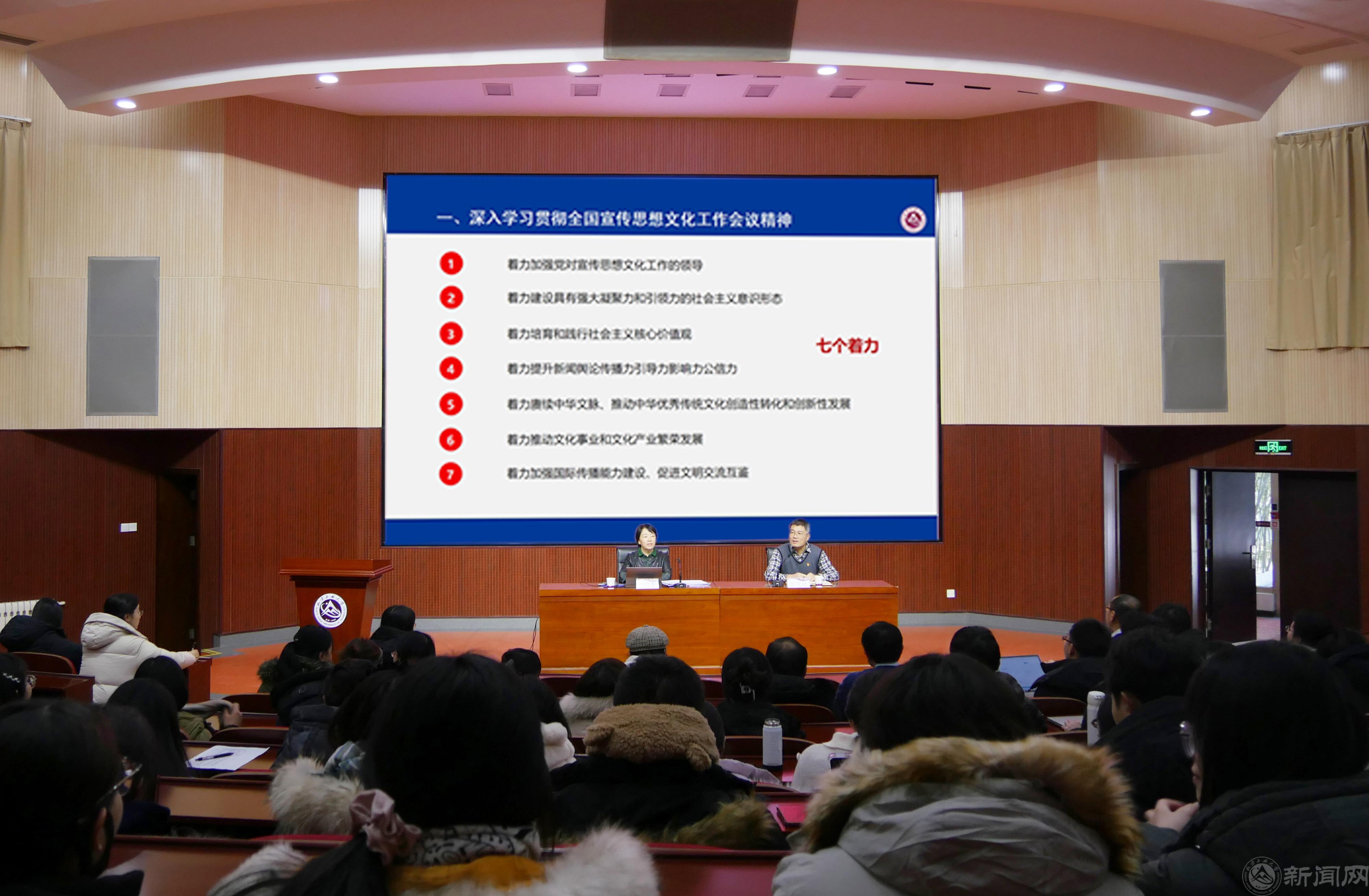 為深入學習貫徹習近平文化思想,堅持以黨的創新理論賦能馬克思主義學院事業發展,12月21日,校黨委副書記田紅芳以“深入學習習近平文化思想 做好新時代宣傳思想文化工作”為題,為馬克思主義學院全體師生講授了一堂專題黨課。黨課報告會由學院黨委書記張茂林主持。