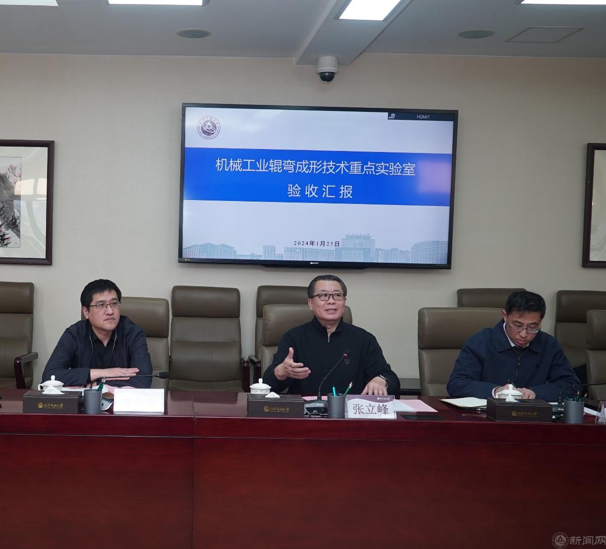 1月25日,中國機械工業聯合會組織專家對我校承擔建設的“機械工業輥彎成形技術重點實驗室”進行了現場驗收。校黨委副書記、校長張立峰、科學與技術研究院院長李全明、機械與材料工程學院院長劉峰斌、重點實驗室主任韓飛和實驗室骨干成員參加了驗收會,會議由中國機械工業聯合會科技工作部主任楊鐵成主持。