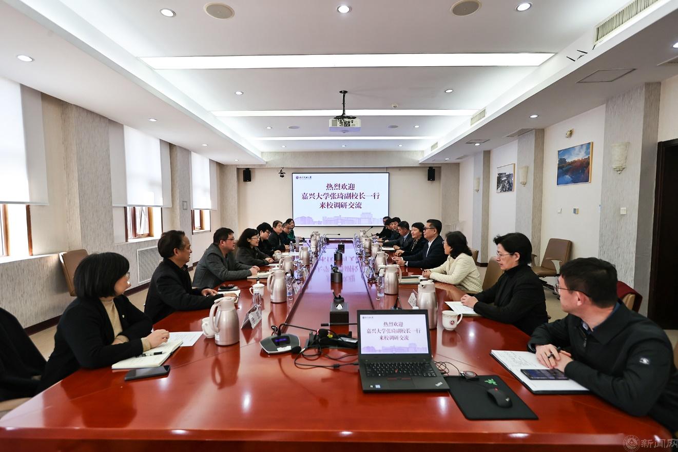 3月11日,嘉興大學副校長張琦一行8人來校調研交流。黨委副書記、校長張立峰,黨委副書記田紅芳,黨委常委、副校長栗蘋在敦品樓342與客人進行座談交流。座談由栗蘋主持。