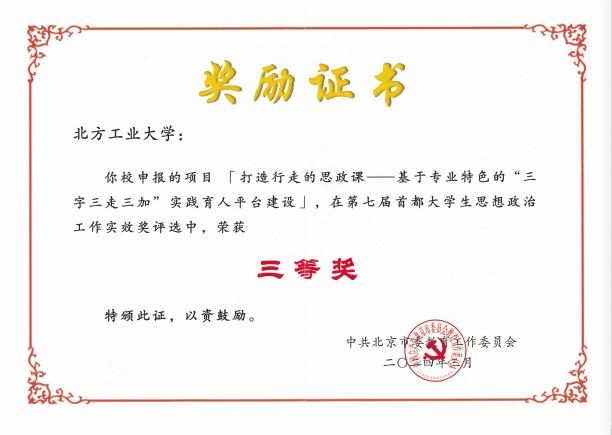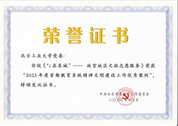 近日,北京市委教育工委公布第七屆首都大學生思想政治工作實效獎評選結果和2023年度首都教育系統精神文明建設工作優秀案例遴選名單。我校報送的《打造行走的思政課——基于專業特色的“三字三走三加”實踐育人平臺建設》榮獲第七屆首都大學生思想政治工作實效獎三等獎。《“i在東城”——故宮地區文旅志愿服務》案例入選“首都系統精神文明建設工作優秀案例”。