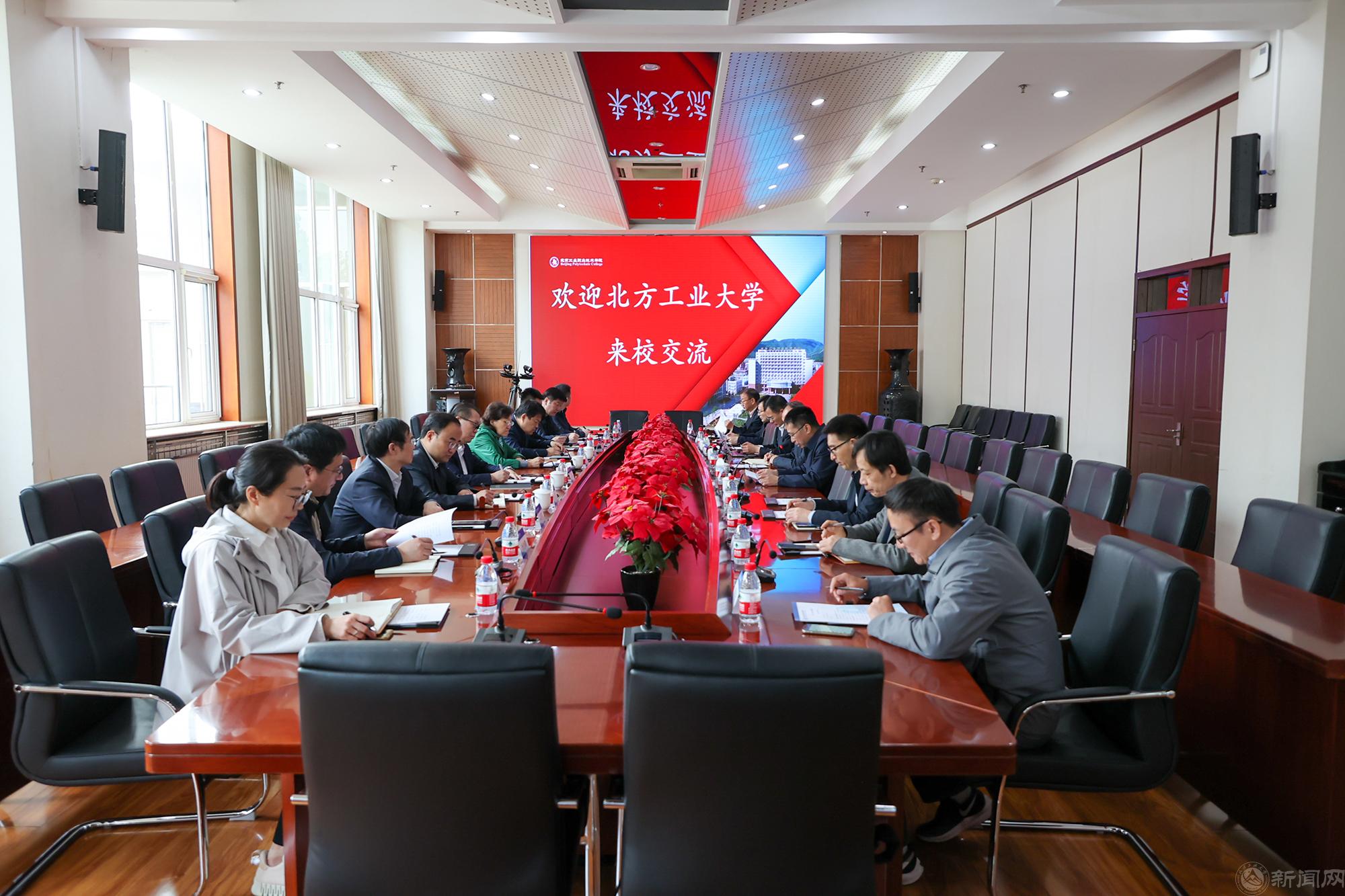 張立峰對學校的熱情接待表示感謝,并從歷史沿革、師資隊伍、學科建設等方面介紹了我校基本情況。他表示北工院在全國高職院校名列前茅,實訓基地建設成績突出,希望兩校在現有基礎上進一步深化合作,傾力打造“京西產科教融合發展共同體”,共同建設成為北京高教的樣板學校。雙方就人才培養、課程實踐、師資共享等方面進了深入交流。